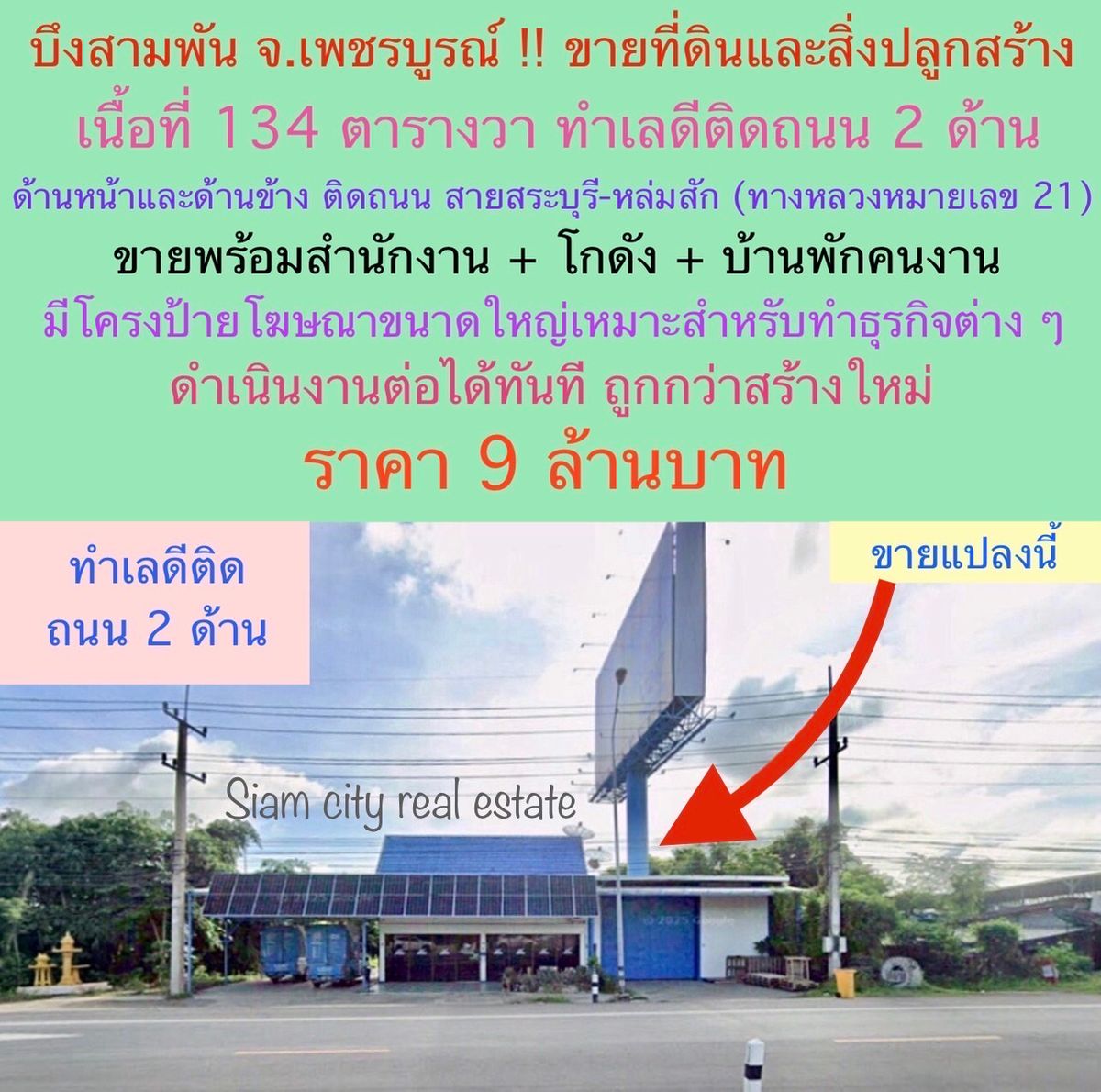 ขายที่ดิน พร้อมสิ่งปลูกสร้าง และโกดังสินค้า พร้อมบ้านพักพนักงาน 🏠 บนทำเลดี ด้านหน้าและด้านข้าง ติดถนน สายสระบุรี - หลุ่มสัก (ทางหลวงหมายเลข 21) ต.บึงสามพัน อ.บึงสามพัน จ.เพชรบูรณ์ ⛳️ พร้อมดำเนินกิจการต่อได้เลย ถูกกว่าสร้างใหม่ 📍 ขายในราคา 9 ล้านบาท 🚩 บนเนื้อที่ 134 ตร.ว. 🚩 อาคารคอนกรีตชั้นเดียว 🚩 ขนาดอาคาร 23 เมตร x 27 เมตร 🚩 พื้นที่อาคาร 509 ตร.ม. 🚩 บ้านพักพนักงาน 🚩 ป้ายโฆษณา เห็น 2 ด้าน ขนาด 10 เมตร x 20 เมตร 🌞 เหมาะสำหรับ 🌀 ทำเป็นสำนักงาน / บริษัท 🌀 โกดังคลังสินค้า / ศูนย์กระจายสินค้า 🌀 กิจการ ค้าขายต่าง ๆ ☎️ สนใจติดต่อ คุณสุธาทิพย์ โทร./ไลน์ คลิกเพื่อดูเบอร์โทรติดต่อ
