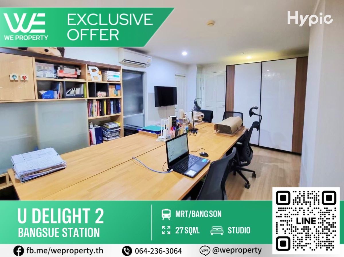 รหัสทรัพย์ (C3-JOB02) U Delight 2 บางซื่อ สเตชั่น สตูดิโอ 1 ห้องน้ำ ขนาด 26.68 ตร.ม. ชั้น 23 ห้องสวยชั้นสูงวิวสระ ทำเลดีไม่มีตึกบัง ขนาดห้องราคาที่สุดในโครงการ!!✨✨ ขายเพียง 1,590,000 บ.เท่านั้น!! ✅มีห