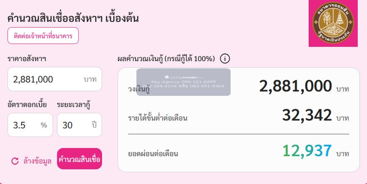 คำนวณสินเชื่ออสังหาฯ เบื้องต้น