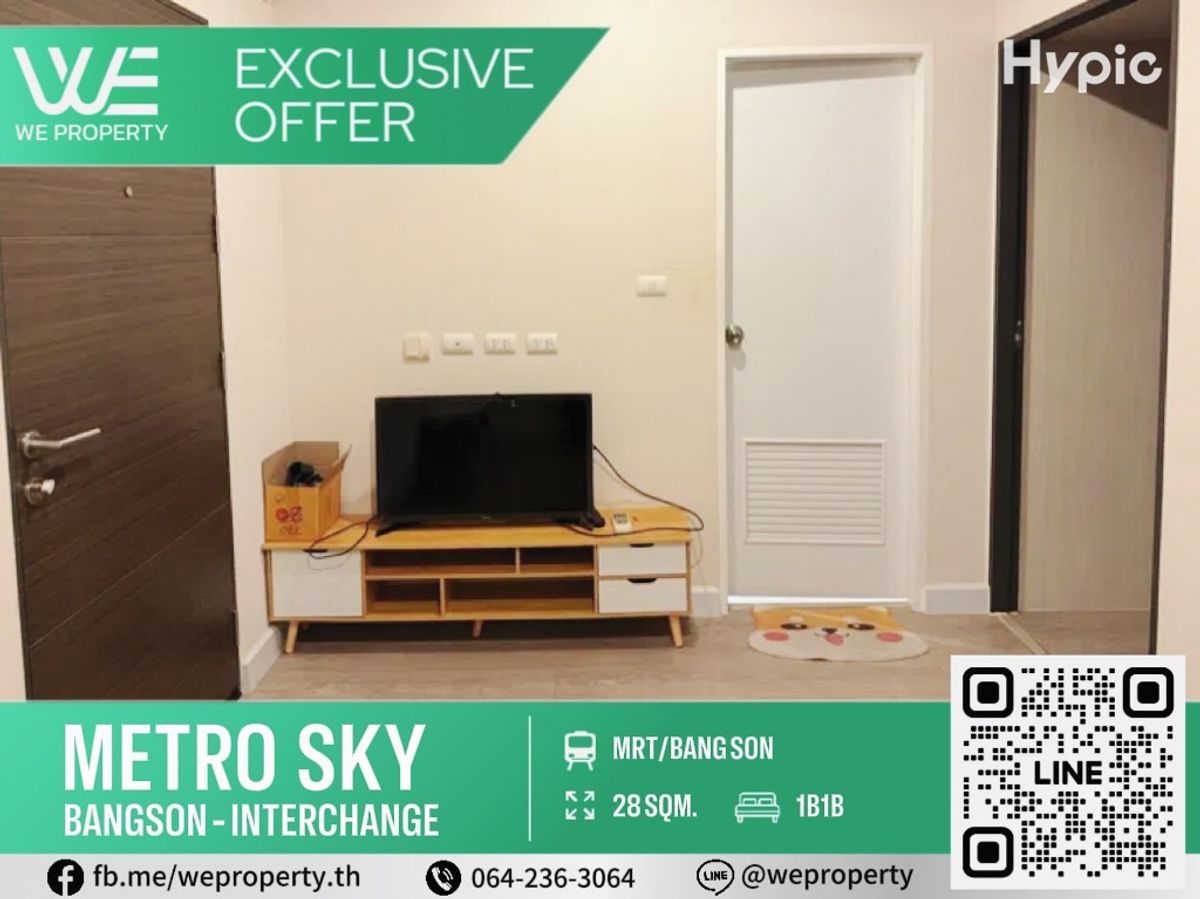 รหัสทรัพย์ (NC-JOB18) Metro Sky บางซ่อน-อินเตอร์เชนจ์ (ประชาชื่น) 1 ห้องนอน 1 ห้องน้ำ ขนาด 28.12 ตร.ม. ชั้น 14 อาคาร C ทิศเหนือไม่ร้อน ห้องสวยทำเลดี วิวโล่งโปร่ง เฟอร์นิเจอร์ครบ+เครื่องใช้ไฟฟ้า ขายเพี