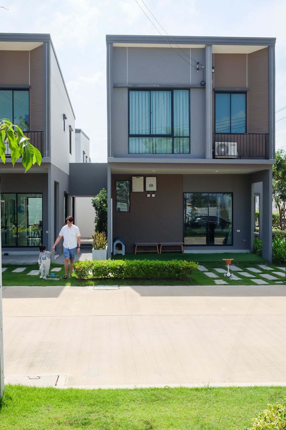 แบบบ้าน THEE หน้าบ้านกว้าง 5.7 เมตร ฟังชั่นบ้านเดี่ยว 4 ห้องนอน 3 ห้องน้ำ จอดรถในบ้านได้ 2 คัน ทาวน์โฮมใหญ่ หน้ากว้าง มาก ติดตั้งโซล่าร์ กลางวันใช้ไฟฟรี คลับเฮ้าส์ขนาดใหญ่ 2 ชั้น ฟิตเนส สระว่ายน้ำ Co-