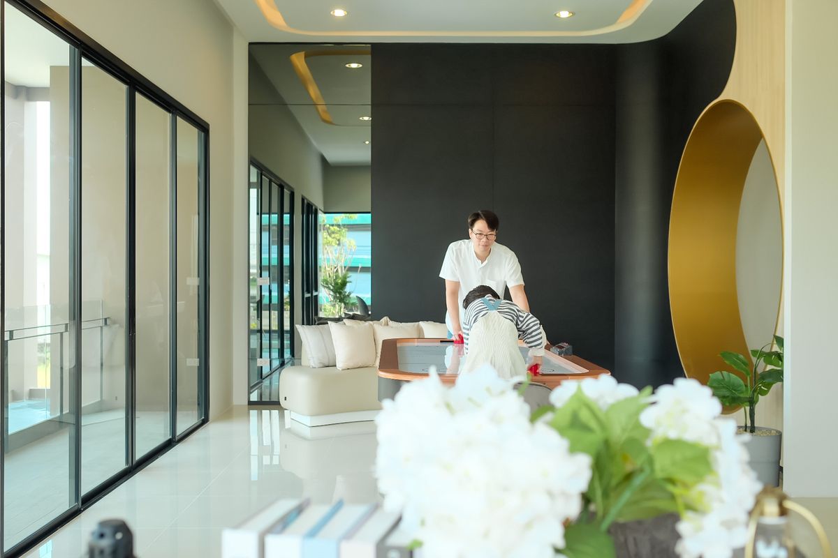 แบบบ้าน THEE หน้าบ้านกว้าง 5.7 เมตร ฟังชั่นบ้านเดี่ยว 4 ห้องนอน 3 ห้องน้ำ จอดรถในบ้านได้ 2 คัน ทาวน์โฮมใหญ่ หน้ากว้าง มาก ติดตั้งโซล่าร์ กลางวันใช้ไฟฟรี คลับเฮ้าส์ขนาดใหญ่ 2 ชั้น ฟิตเนส สระว่ายน้ำ Co-working Space, ล็อบบี้รับแขก สนใจโทร คลิกเพื่อดูเบอร์โทรติดต่อ