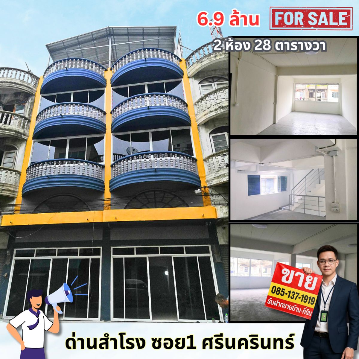 อาคารพาณิชย์ ด่านสำโรง 1 ศรีนครินทร์ 3.5 ชั้น2ห้อง ปากซอยด่านสำโรง-ศรีนครินทร์ ราคา 6.9 ล้าน ------------------- อาคารพาณชย์ 3.5 ชั้น 2 ห้องติดกัน ขนาด 28 ตรว. สำหรับค้าขาย / พักอาศัย ทำเล ปากซอยด่านส