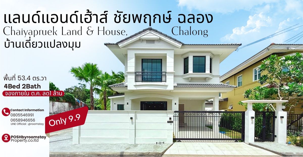 Chaiyapruek Land & House, Chalong Newly renovated detached corner house in the prime Chalong location Featuring 4bedrooms, 2bathrooms, and 1 home office on a 213.6 sqm living area. Built-in parking, kitchen, and office space with a landscaped garden corner. Good location, Good choice for living or investment ┏━━━━━━━━━━━━━┓ Offered Price 9,900,000.- 1 Million THB Discount – Book by October 2025 to enjoy this special offer! ลด 1 ล้านบาท โปรโมชั่นพิเศษเพียงจองภายในเดือนตุลาคม 68 ┗━━━━━━━━━━━━━┛ บ้านเดี่ยวแปลงมุมรีโนเวทใหม่ #แลนด์แอนด์เฮ้าส์ บ้านชัยพฤกษ์ ฉลอง แลนด์แอนด์เฮ้าส์ ชัยพฤกษ์ ฉลอง 4 ห้องนอน 2 ห้องน้ำ 1 ห้องทำงาน รีโนเวทตามแบบแต่ไม่รวมเฟอร์นิเจอร์ลอยตัว มาพร้อมพื้นที่พื้นที่จัดมุมสวนข้างบ้าน ต่อเติมbuilt-inครัว, พื้นที่จอดรถ, ห้องทำงาน พื้นที่ใช้สอย 53.4 ตารางวา * โครงการล้อมรอบด้วยแหล่งอำนวยความสะดวก อาทิ เทสโก้โลตัสฉลอง โรงพยาบาลดีบุก * การเดินทางสะดวกใกล้ถนนสายหลัก ถนนเจ้าฟ้าตะวันตก ถนนเจ้าฟ้าตะวันออก และถนนวิเศษ ⚫️ #บริษัทพอชบายรูมสเตย์พร็อพเพอร์ตี้ 🕳️ บริการเช็คเครดิต • คำนวณความสามารถในการกู้ • คำนวณอัตราผ่อนแต่ละเดือน 🕳️ We excel in sales and adeptly manage the trading operations for international clientele ➖➖➖➖➖➖➖➖➖➖➖➖➖➖➖➖➖ ☎️ More information, Please do not hesitate to contact us คลิกเพื่อดูเบอร์โทรติดต่อ คุณแนน คลิกเพื่อดูเบอร์โทรติดต่อ แอดมิน คลิกเพื่อดูเบอร์โทรติดต่อ K.Ping (eng.) Line: @roomstay สอบถามข้อมูลทาง LINE สะดวกกว่าค่ะมีแอดมินดูแล