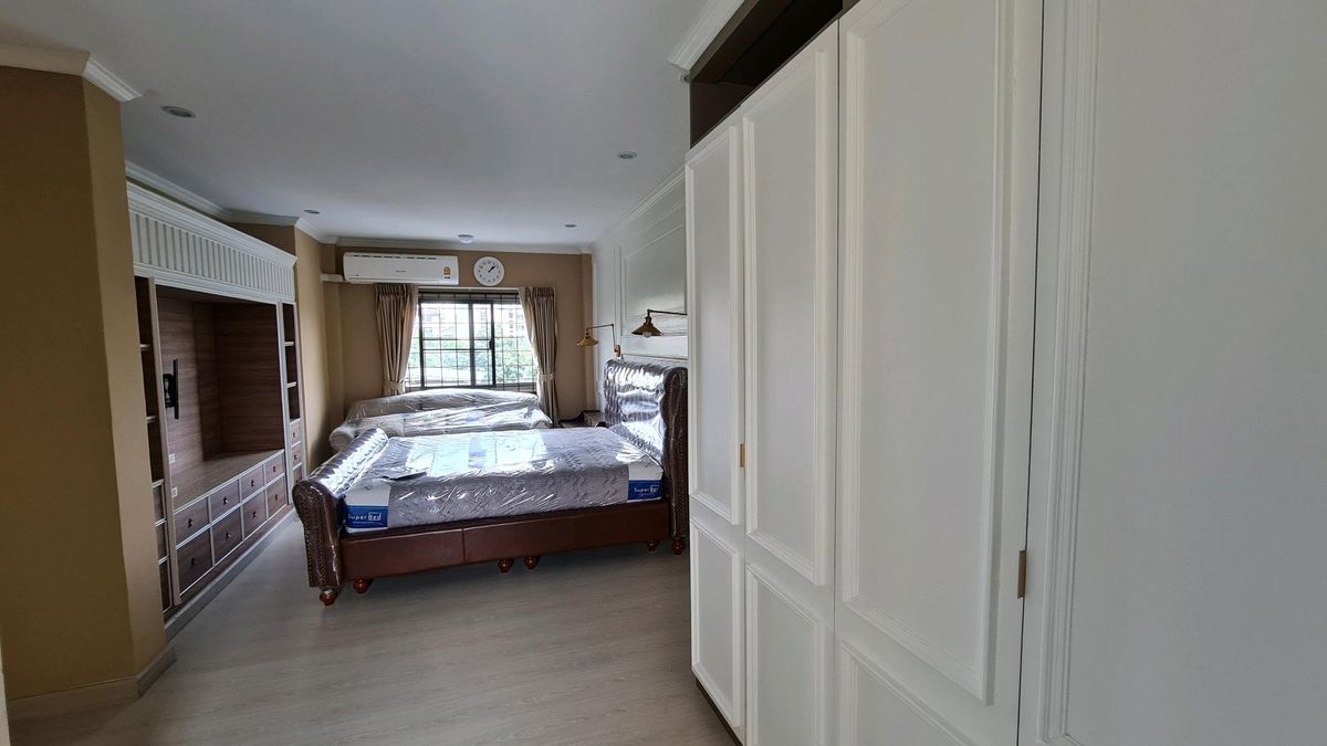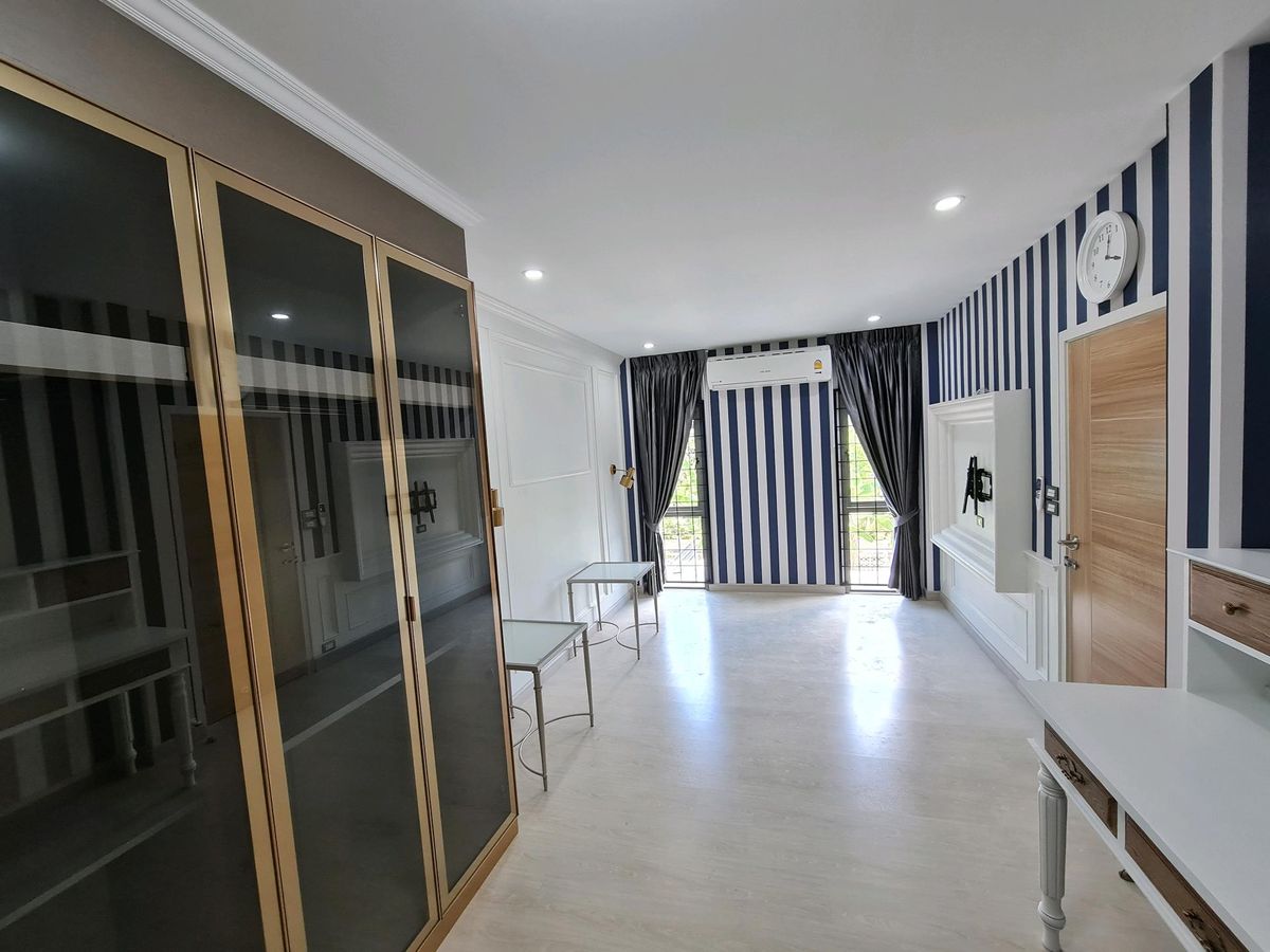 5 ห้องนอน 5 ห้องน้ำ 3 ลิฟวิ่งรูม 1 ห้องทำงาน 1 ห้องครัว มีห้องแม่บ้านมีห้องน้ำในตัวแยก จอดรถในบ้านได้ 4 คัน ไม่เสียค่าส่วนกลาง สร้างเสร็จมาแล้ว 4 ปี