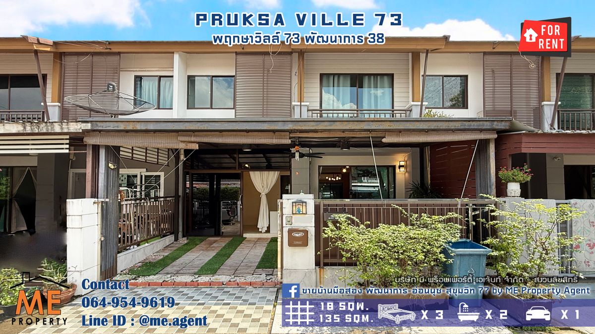 ให้เช่า ทาวน์เฮ้าส์ 2 ชั้น พฤกษาวิลล์ 73 พัฒนาการ 38 3 นอน 2 น้ำ เฟอร์นิเจอร์บิ้วท์อิน เดินทางเข้าสุขุมวิทได้ง่าย โทร คลิกเพื่อดูเบอร์โทรติดต่อ (RTA32-18) . ทำเลดี เข้าออกได้หลายทาง ทั้ง ซ.อ่อนนุช 39 ศรีนครินทร์ 24 ซอยพัฒนาการ 30,32,38,44 รถไฟฟ้า BTS สถานีอ่อนนุช และ Airport Link สถานีหัวหมาก . - ขนาดเนื้อที่ 18 ตร.ว. พื้นที่ใช้สอย 135 ตร.ม. - 3 ห้องนอน 2 ห้องน้ำ - 1 ห้องครัวต่อเติม - 1 ห้องอเนกประสงค์ - พร้อมเฟอร์นิเจอร์บิ้วท์ - แอร์ 4 เครื่อง . ค่าเช่าเพียง 23,000 บาท/เดือน . สนใจติดต่อเราได้ที่ ME Property Agent โทร คลิกเพื่อดูเบอร์โทรติดต่อ K.มุก LINE : @me.agent IG : mepropertyagent TIKTOK : meagent YouTube : @meagent5131 ติดตามชมบ้านสวยๆ ได้ในเพจ ME ทัก Inbox FB : ขายบ้านมือสอง พัฒนาการ-อ่อนนุช-สุขุมวิท 77 by ME Property Agent . ส่วนกลาง – The Bale House / สระว่ายน้ำระบบเกลือ – สวนสาธารณะ / ระบบประตูล็อก 2 ชั้น – Auto Access Card / CCTV – รปภ. 24 ชม. . สถานที่ใกล้เคียง -The Mall รามคำแหง 5.9 กม. / เกษมบัณฑิต 5.3 กม. -London Street 4.3 กม. / Picka Daily 3.9 กม. -Max Value 3.1 กม. / Gateway เอกมัย 7.8 กม. -Thanya Park 4.0 กม. / โรงเรียนเตรียมอุดมศึกษา พัฒนาการ 4.8 กม. -ตลาดสดพัฒนาการ 4.6 กม. / โรงพยาบาลสมิติเวช ศรีนครินทร์ 4.7 กม. -Tesco Lotus 4.2 กม. / The Nine พระราม 9 8.5 กม. -Seacon Square 4.9 กม. / Paradise Park 6.1 กม. #MEpropertyagent #ONEStopService #บ้านมือสอง #บ้านพัฒนาการ #บ้านอ่อนนุช #บ้านพร้อมอยู่ #ทาวน์เฮ้าส์อ่อนนุช #ทาวน์เฮ้าส์พัฒนาการ #บ้านเดี่ยวพร้อมอยู่ #ปล่อยให้เช่า #ให้เช่า #ทาวน์โฮม #พฤกษาวิลล์73 #Pattanakarn #PruksaVille73 #BaanSuanLuang #ค่าเช่าถูก #ทาวน์เฮ้าส์ #ใกล้สุขุมวิท #ใกล้อ่อนนุช #เอกมัย #ทองหล่อ