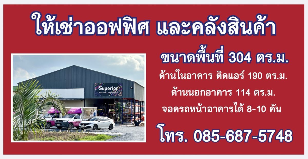 ออฟฟิศ และคลังสินค้า ติดแอร์ ตกแต่งสวยงาม พร้อมอยู่ ต่อเติมได้