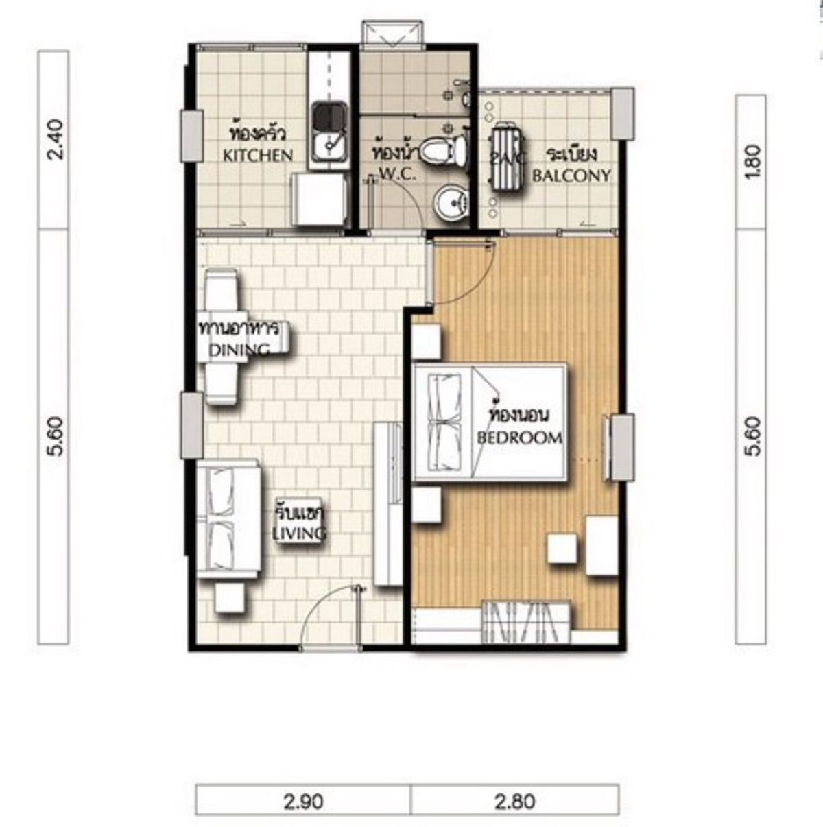 พื้นที่ใช้สอย 45.28 ตร.ม.