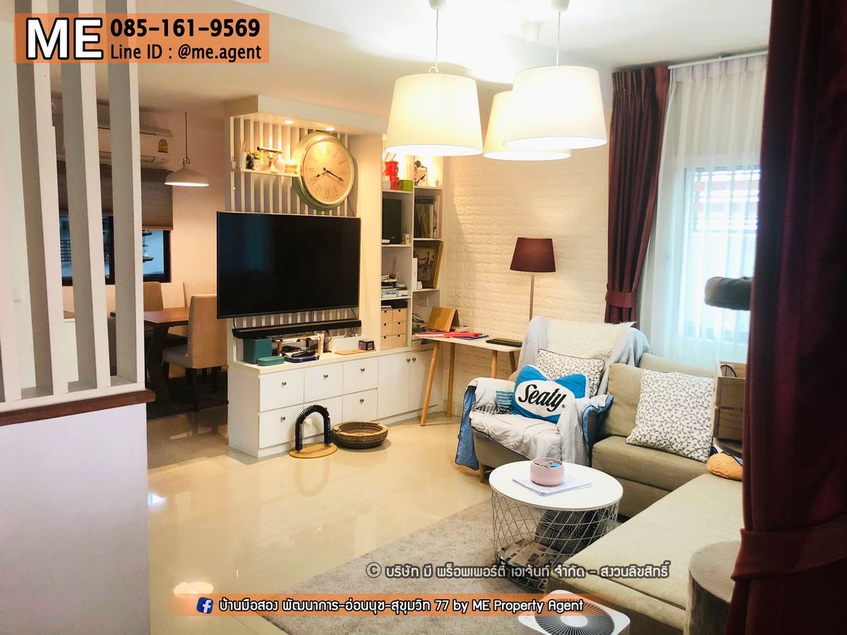ให้เช่า ทาวน์เฮ้าส์ หลังมุม พฤกษาวิลล์ 73 เฟอร์นิเจอร์ครบ ใกล้เอกมัย ทองหล่อ สุขุมวิท โทร คลิกเพื่อดูเบอร์โทรติดต่อ (RTA21-31) . ทำเลทอง ออกได้ 3 เส้นทางหลัก พัฒนาการ - อ่อนนุช – ศรีนครินทร์ ใกล้ BTS และ Airport Link . - พื้นที่ 31 ตรว. 120 ตรม. - 3 ห้องนอน 2 ห้องน้ำ 2 จอด - มีครัวนอก ครัวใน - เฟอร์นิเจอร์ พร้อมเครื่องใช้ไฟฟ้า . เช่า 33,000 บาท / เดือน . สนใจติดต่อเราได้ที่ ME Property Agent โทร คลิกเพื่อดูเบอร์โทรติดต่อ K.มุก (TH/ENG/JP) LINE : @me.agent IG : mepropertyagent [https://www.instagram.com/mepropertyagent?igsh=MWo0dmZhaGF2N3J5bw==] TIKTOK : meagent [https://www.tiktok.com/@meagent?is_from_webapp=1...] YouTube : @meagent5131 [https://www.youtube.com/channel/UCdOL3eFLB4iIxpTuGJVRMpw] ติดตามชมบ้านสวยๆ ได้ในเพจ ME ทัก Inbox FB : ขายบ้านมือสอง พัฒนาการ-อ่อนนุช-สุขุมวิท 77 by ME Property Agent [https://www.facebook.com/MEpropertyAgent] . สิ่งอำนวยความสะดวกใกล้เคียง ทำเลดี เข้าออกได้หลายทาง ทั้ง ซ.อ่อนนุช 39 ศรีนครินทร์ 24 ซอยพัฒนาการ 30,32,38,44 ● Big C , Lotus ● พาราไดรซ์,ซีคอน ● ตลาดเอี่ยม, ตลาดรถไฟ ● ธัญญาพาร์ค ● โรงพยาบาล . สิ่งอำนวยความสะดวกในโครงการ มีสระว่ายน้ำ สวนสาธารณะ รปภ.24ชั่วโมง Fitness . #MEpropertyagent #ONEStopService #บ้านมือสอง #บ้านพัฒนาการ #บ้านอ่อนนุช #บ้านพร้อมอยู่ #ทาวน์เฮ้าส์อ่อนนุช #ทาวน์เฮ้าส์พัฒนาการ #บ้านเดี่ยวพร้อมอยู่ #บ้านเดี่ยว #พฤกษาวิลล์73 #ทาวน์เฮ้าส์ #พัฒนาการ38 #ปล่อยให้เช่า #ให้เช่า #ทาวน์โฮม #พฤกษาวิลล์73 #Pattanakarn #PruksaVille73 #ค่าเช่าถูก #ทาวน์เฮ้าส์ #ใกล้สุขุมวิท #ใกล้อ่อนนุช #เอกมัย #ทองหล่อ +++++++++++++++++++++++++++++ Rent Townhouse Pruksa Ville 73 Pattanakarn 38 - Onnut 39 15 mins to Thonglor Tel คลิกเพื่อดูเบอร์โทรติดต่อ (RTA21-31) . #15mins-thonglor #Pattanakarn-Onnut-Srinakasrin #Easy to connect Sukhumvit Rd. . - Area 31 sqw. 120 sqm. - 3 Bedroom 2 Bathroom -2 Kitchen - All Furniture . Rent 33,000 THB / Month . For appointment and more info please contact ME Property Agent Make appointment ME Property Agent Call : คลิกเพื่อดูเบอร์โทรติดต่อ K.Mook (TH/ENG/JP) LINE : @me.agent IG : mepropertyagent [https://www.instagram.com/mepropertyagent?igsh=MWo0dmZhaGF2N3J5bw==] TIKTOK : meagent [https://www.tiktok.com/@meagent?is_from_webapp=1...] YouTube : @meagent5131 [https://www.youtube.com/channel/UCdOL3eFLB4iIxpTuGJVRMpw] ติดตามชมบ้านสวยๆ ได้ในเพจ ME ทัก Inbox FB : ขายบ้านมือสอง พัฒนาการ-อ่อนนุช-สุขุมวิท 77 by ME Property Agent [https://www.facebook.com/MEpropertyAgent] . Nearby landmarks - Family Mart: 2.3 km. - 7-11 : 0.26 km. - Bangkok Christian International School: 3.4 m. - Thai-Nichi Institute of Technology: 3.0 km. - Kasem Bundit University: 2.8 km. - Big C On Nut: 5.1 km. - Tesco Lotus On Nut: 5.8 km. - Maxvalue: 3.1 km. - Thanya Park Srinakarin: 2.2 km. - Seacon Square: 3.9 km. - Paradise Park: 4.9 km
