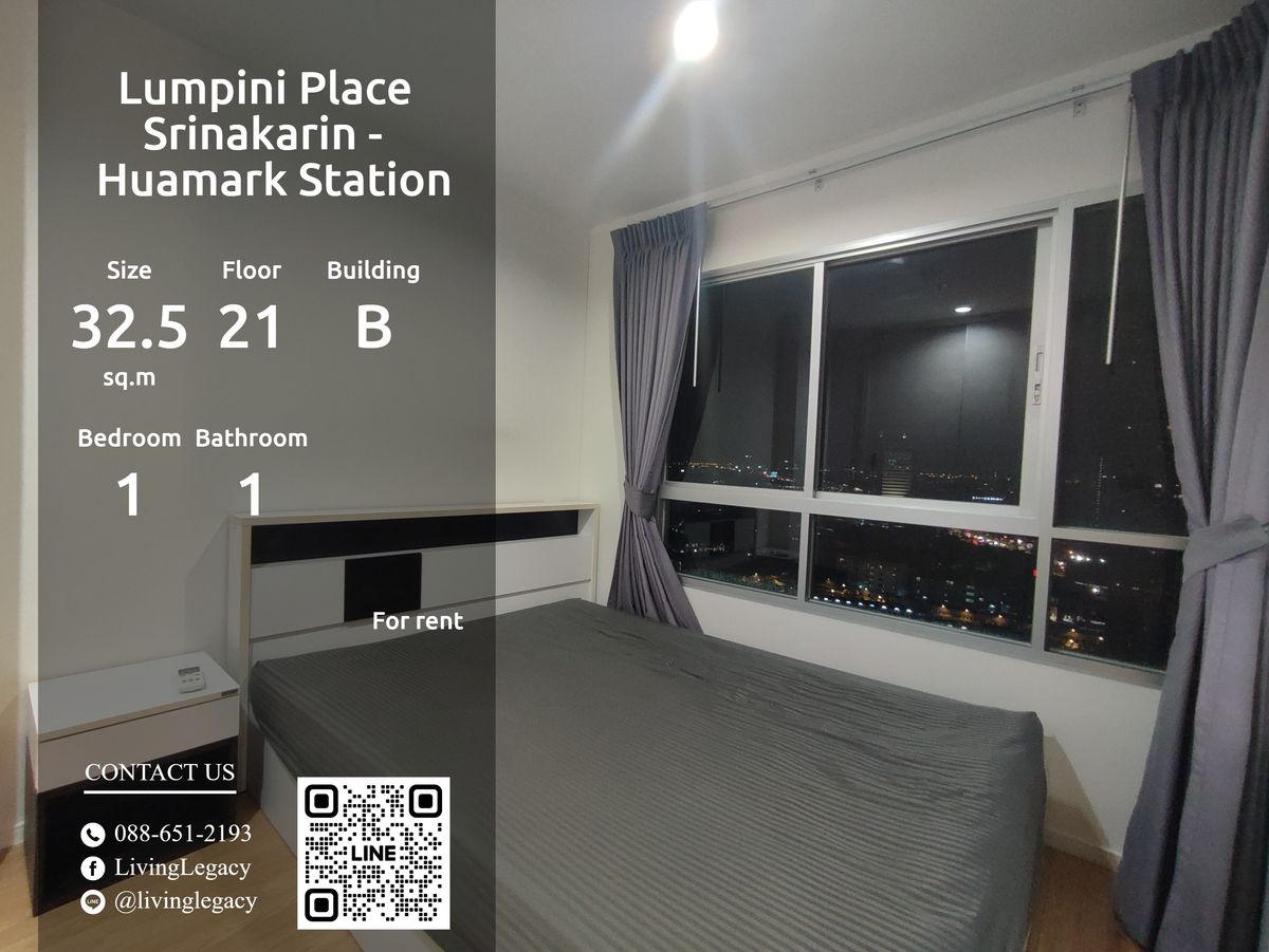 LRZZ4UDL ให้เช่าคอนโด Lumpini Place Srinakarin - Huamark Station 32.5 ตร.ม. ชั้น 21 ตึก B line id : @livinglegacy