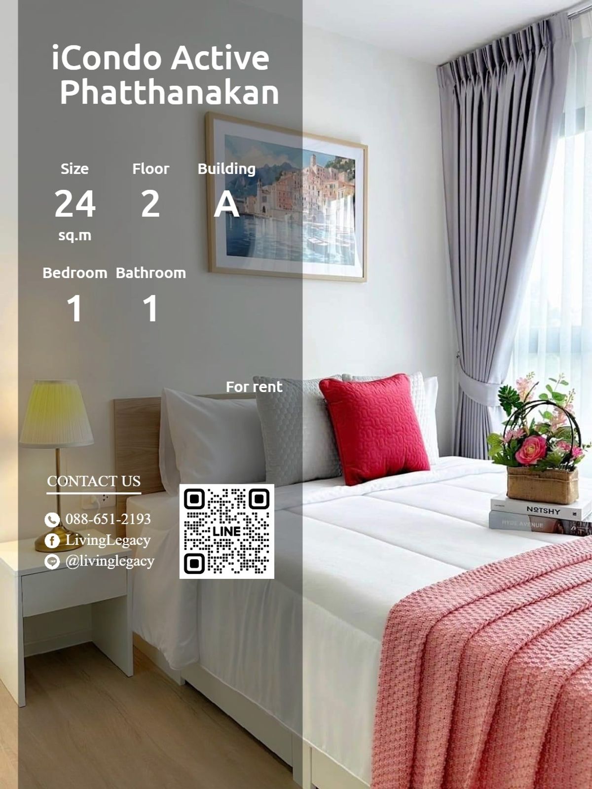 🏠 SHSCBS ให้เช่าคอนโด iCondo Active Phatthanakan 24 ตร.ม. ชั้น 2 ตึก A 1 นอน 1 น้ำ ✨ พร้อมอยู่ทันที! ห้องสวยแต่งครบ พร้อมเข้าอยู่ได้เลย! 🔍รายละเอียด - จำนวนห้องนอน: 1 - จำนวนห้องน้ำ: 1 - พื้นที่ใช้สอย (ตร.ม.): 24 - ชั้นที่: 2 - อาคาร: A 🌟 ไฮไลท์ห้องนี้! 🌟 🌟สิ่งอำนวยความสดวกต่างๆ - เครื่องปรับอากาศ - เฟอร์นิเจอร์ - เครื่องซักผ้า - ตู้เย็น - ที่จอดรถ 📞 รีบจองด่วน! สอบถามรายละเอียดเพิ่มเติม ราคา 12000 บาท รหัสทรัพย์สิน: SHSCBS สนใจติดต่อ แอดไลน์ ID: @livinglegacy เฟสบุ๊ค: LivingLegacy WhatsApp: https://wa.me/ คลิกเพื่อดูเบอร์โทรติดต่อ สนใจห้องอื่นๆในโครงการคลิก : https://living-legacy.atrobot.asia/property-listing/66a0d19c2eeae49666f25880 #iCondoActivePhatthanakan #OpusOneSchoolofMusicandDanceโรงเรียนดนตรีโอปุสวัน #ThanyaPark #SiNut #ENERGYTECHNOLOGYCOMPANYLIMITED #CamuiThailandCompanyLimited #SiamCityConcreteCompanyLimited #WatThongNaiSchool #PrasarnwitWattanaSchool #AnertechCompanyLimited #TheNineCenterRama9
