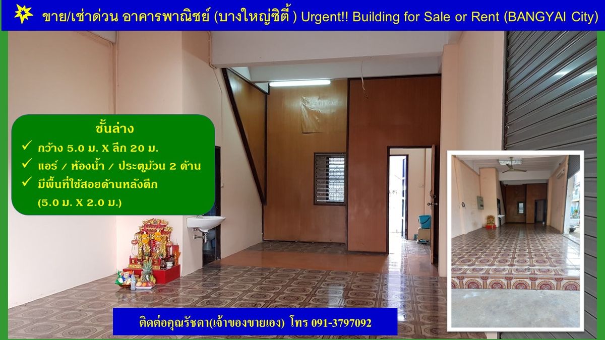 🎈🎈ที่ตั้ง: 63/411 (บางใหญ่ซิตี้ 10/13) หมู่ที่ 6 ต.เสาธงหิน อ.บางใหญ่ จ.นนทบุรี11140 ✅ https://maps.app.goo.gl/CUi2Tifgx1C6q64F8?g_st=ic ✅ห้องริม(ใหญ่กว่าห้องข้างเคียง) 22 ตารางวา ติดถนน พื้นที่ใช้สอย 290 ตารางเมตร / กว้าง 6.0 เมตร ลึก 20 เมตร / 3 ชั้นและชั้นดาดฟ้า /2 ห้องนอน/ 3 ห้องน้ำ / ติดแอร์/ มีลานใช้สอยหน้าตึก 6.0 X 4.0 เมตร- หลังตึก 6.0 X 2.5 เมตร 🎈🎈จุดเด่น: ✅ใกล้เซ็นทรัลเวสเกต และ MRT บางใหญ่ เพียง 800 เมตร ✅ อยู่ในตลาดบางใหญ่ ชุมชนขนาดใหญ่ หน่วยงานราชการ ✅เหมาะทำธุรกิจออนไลน์ คลังกระจายสินค้า สำนักงาน พร้อมอยู่อาศัย 🎈🎈ขาย 4.49 ล้าน ต่อรองได้ เจ้าของขายเอง 💥Urgent!! Building for sale/rent (BANGYAI City) Retail hub and living, Near Central Westgate and MRT ✅Address: 63/411 (BANGYAI City 10) Moo 6, BANGYAI district Nonthaburi 11140 ✅ Location: https://maps.app.goo.gl/CUi2Tifgx1C6q64F8?g_st=ic ✅In BANGYAI community / Near Central Westgate and BTS BANGYAI station about 800 M. ✅ Available space: Whole building Total space 350 sqm. / 3 floors with rooftop ✅2 rooms /3 bathrooms/ rooftop and available spaces / area 6.0 X 20.0sq.m. 🎈🎈Sale: 4.49 Mill Baht (Sale by Owner) 🎈🎈 Contact: RACHADA Tel คลิกเพื่อดูเบอร์โทรติดต่อ / Email: คลิกเพื่อดูอีเมล / Line ID: คลิกเพื่อดูเบอร์โทรติดต่อ