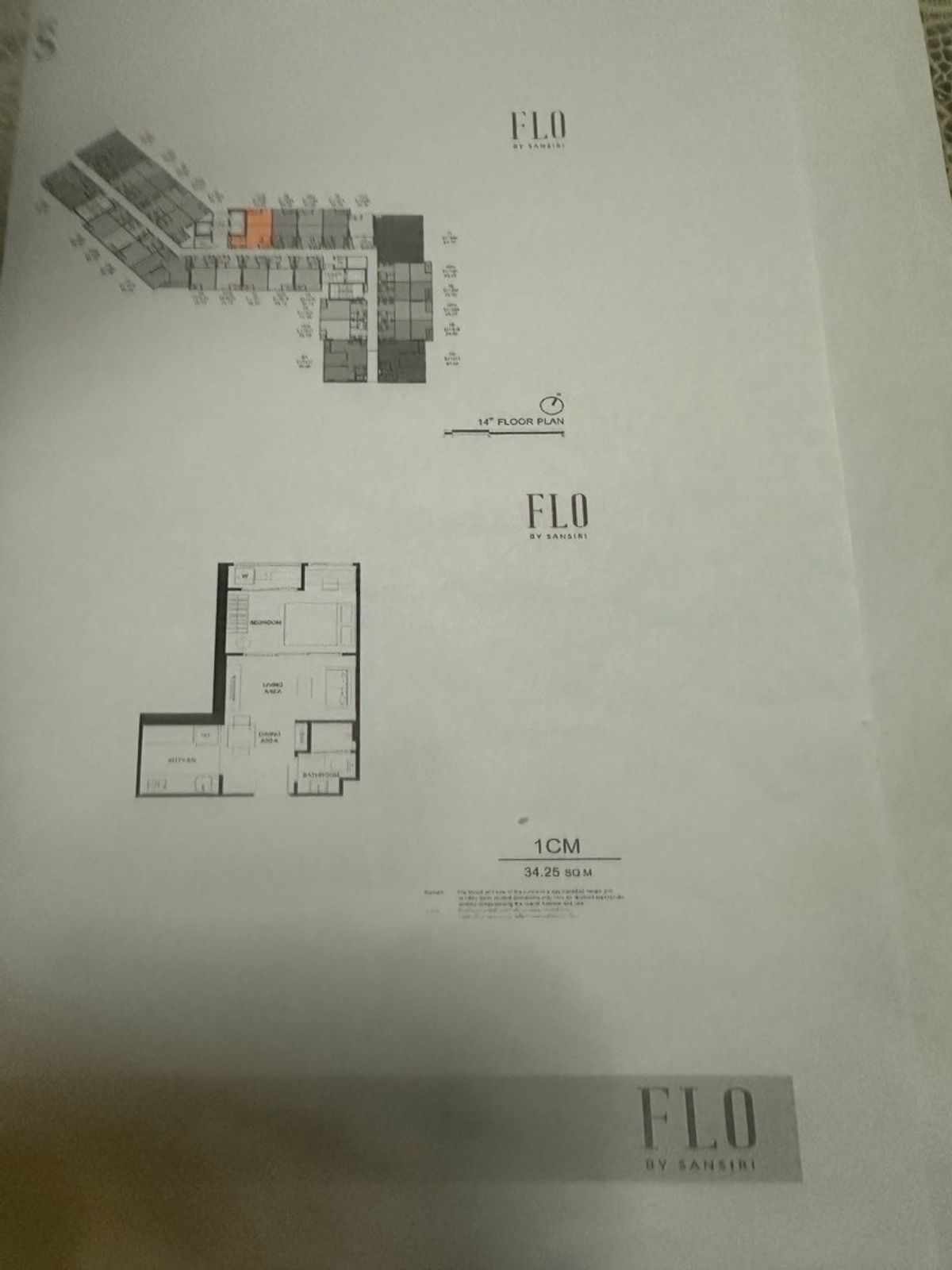 ขายดาวน์ คอนโด Flo by Sansiri ชั้น 14 ทิศเหนือ พื้นที่ 34.42 ใกล้ไอคอนสยามเพียง 3 นาที ใกล้BTSสายสีทองเพียง450 เมตร ใกล้ตลาดท่าดินแดง เพียง 200 เมตร