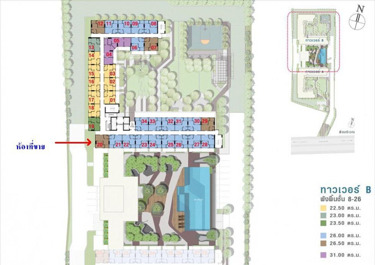 อาคาร บี ชั้น 22 ห้องมุม วิวสระว่ายน้ำ