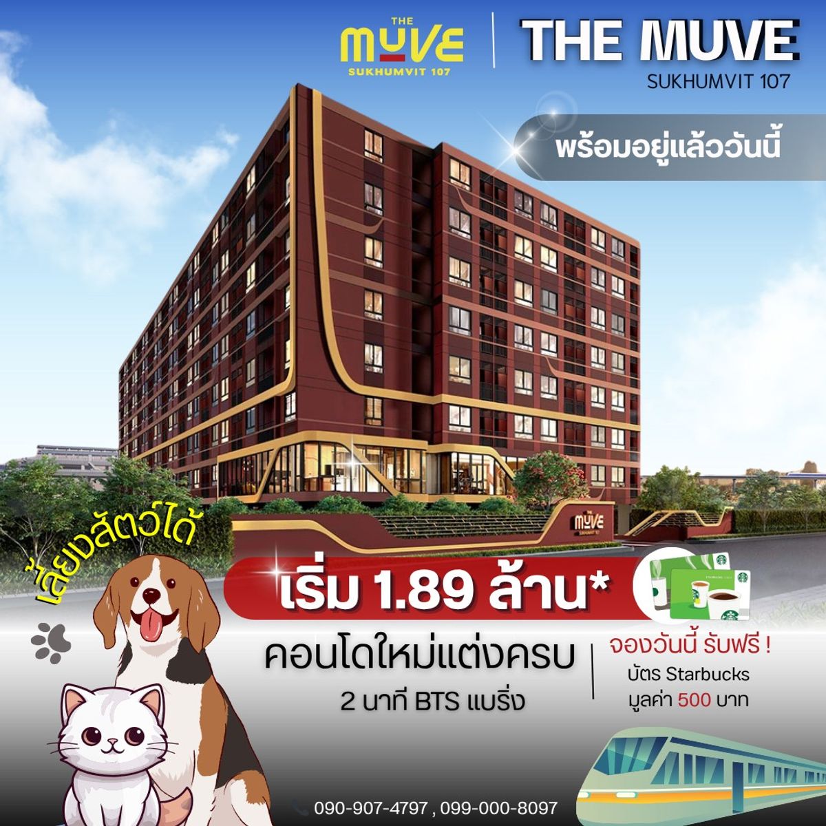 🐾 คอนโดใหม่... ที่พร้อมเป็น "บ้าน" ของคุณและน้องๆ สี่ขา! 🏙️ THE MUVE Sukhumvit 107 – Pet-Friendly Condo ย่านแบริ่ง ที่นี่...ไม่ต้องแอบเลี้ยงอีกต่อไป 🎉 ให้คุณและน้องๆ อยู่ด้วยกันอย่างสบายใจ 💕 ทั้งอบอุ่นเหมือนอยู่บ้าน และชิคสุดๆ ด้วยดีไซน์โมเดิร์นสไตล์คนเมือง . ✨ จุดเด่นโครงการ: ✅ ใกล้ BTS แบริ่ง 🚆 เดินทางสะดวก มีรถรับ-ส่ง ✅ บรรยากาศอบอุ่น พื้นที่ส่วนกลางครบครัน ✅ แต่งครบ พร้อมอยู่ทันที . 💰 ราคาเริ่มเพียง 1.89 ล้านบาท* 🔥 โปรสุดพิเศษ! ✨ ฟรีค่าโอน ✨ ฟรี All (ค่าส่วนกลาง 1 ปี / ค่ามิเตอร์ไฟ-น้ำ) ✨ ฟรีเครื่องใช้ไฟฟ้าครบชุด 🎁 จองวันนี้ รับเพิ่ม! บัตร Starbucks มูลค่า 500 บาท . พิเศษ! ลงทะเบียนนัดชมกับพี่ SC วันนี้ รับโปรโมชั่นส่วนลดสุดพิเศษก่อนใคร 💥 . 📞 สนใจรายละเอียด / นัดชมโครงการ ติดต่อได้เลยค่ะ 📲 LINE: @scpropertygroup 📱 Tel: คลิกเพื่อดูเบอร์โทรติดต่อ | คลิกเพื่อดูเบอร์โทรติดต่อ | คลิกเพื่อดูเบอร์โทรติดต่อ มั่นใจทุกดีลกับทีมอสังหาฯ มืออาชีพ ประสบการณ์กว่า 10 ปี ดูแลครบวงจร – ซื้อ / ขาย / เช่า พร้อมให้คำปรึกษาสินเชื่อฟรี พร้อมบริการ Pre-approve ฟรี! 💪 . #TheMuveSukhumvit107 #คอนโดเลี้ยงสัตว์ได้ #PetFriendlyCondo #คอนโดสุขุมวิท #คอนโดใกล้BTSแบริ่ง #คอนโดใหม่ #คอนโดพร้อมอยู่ #บ้านของคนรักสัตว์ #PetFriendlyBangkok #คอนโดน้องหมาน้องแมว #SCPropertyGroup