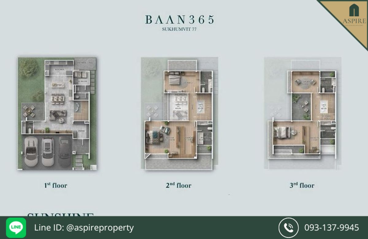 [ขาย] บ้านเดี่ยว 3 ชั้น 4 นอน + 5 น้ำ 1 ห้องแม่บ้าน สุขุมวิท 77 รหัสทรัพย์: TP25012237 Baan 365 Sukhumvit 77 (บ้าน 365 สุขุมวิท 77) บ้านเดี่ยว 3 ชั้น มีเพียง 38 ยูนิต TYPE LARVIKITE (S) • ที่ดินขนาด 50 ตร.ว. • พื้นที่ใช้สอย 331 ตร.ม. • 4 ห้องนอน 5 ห้องน้ำ • ที่จอดรถ 3 คัน • ห้องแม่บ้าน 1 ห้อง • ตกแต่งเฟอร์นิเจอร์มาตราฐาน • มีความโล่งโปร่งสบายในการใช้งาน มีการแบ่งสัตว์ส่วนชัดเจน • ตั้งอยู่ ซอย อ่อนนุช 46 เขตสวนหลวง เชื่อมต่อถนนศรีนครินทร์ / ซอยอ่อนนุช และถนนสุขุมวิท สิ่งอำนวยความสะดวกภายในโครงการ • อาคาร Clubhouse • Fitness • Co-Working Space • Swimming Pool • Garden • ระบบสายไฟฟ้า และเสาสัญญาณใต้ดินทั้งโครงการ • เจ้าหน้าที่รักษาความปลอดภัย 24 ชั่วโมง • ประตูรั้วโครงการแบบ เหล็กรางเลื่อนไฟฟ้า สถานที่ใกล้เคียง • ใกล้ซีคอนสแควร์ ตลาดรถไฟ และพาราไดซ์ พาร์ค • ธัญญาพาร์ค • โลตัส อ่อนนุช 80 • รพ.สินแพทย์ ศรีนครินทร์ • รพ.ไทยนครินทร์ • รพ.กล้วยน้ำไท • รพ.สมิติเวช สุขุมวิท • St. Andrews International School • Bangkok Prep International Schoo • Wells International School ราคาขาย 28 ล้านบาท For viewing, contact Tel. : คลิกเพื่อดูเบอร์โทรติดต่อ WhatsApp : คลิกเพื่อดูเบอร์โทรติดต่อ Line ID : @aspireproperty Email : คลิกเพื่อดูอีเมล Aspirethailand.com