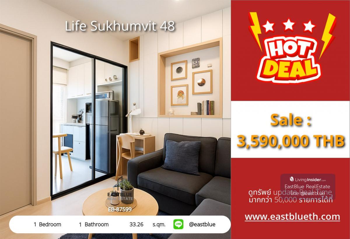 Project : Life Sukhumvit 48 ID : EB-87599 1 Bed 1 Baht Size :33.26 sqm Selling Price : 3,590,000 - Contact, Appointment for viewing. Line: @eastblue / https://lin.ee/yNwHbFs WhatsApp: คลิกเพื่อดูเบอร์