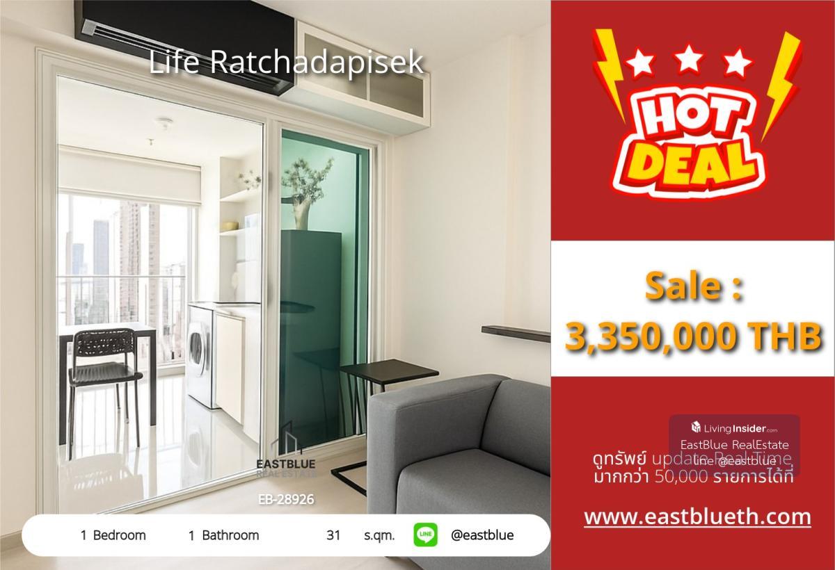Project : Life Ratchadapisek ID : EB-28926NK 1 Bed 1 Baht Size :31 sqm Selling Price : 3,350,000 - Contact, Appointment for viewing. Line: @eastblue / https://lin.ee/yNwHbFs WhatsApp: คลิกเพื่อดูเบอร์