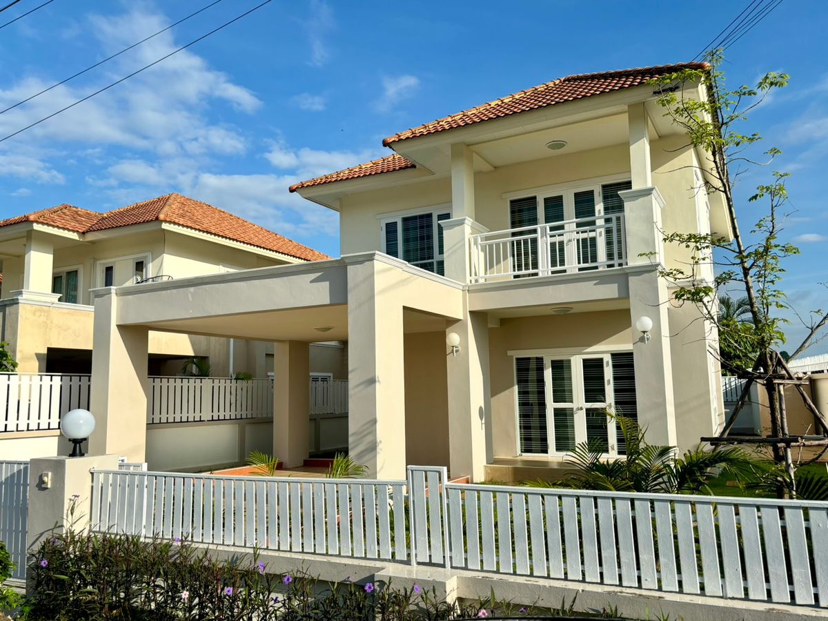 บ้านเดี่ยว 2 ชั้น เนื้อที่ 82 ตรว. ติดถนนสุขุมวิท หลังมุม เฟอร์นิเจอร์ครบพร้อมอยู่ 🌴สิ่งอำนวยความสะดวก - ระบบรักษาความปลอดภัย 24 ชม. - สวนส่วนกลาง 🚙 สถานที่ใกล้เคียง - สนามบินอู่ตะเภา, โรบินสันบ้านฉาง