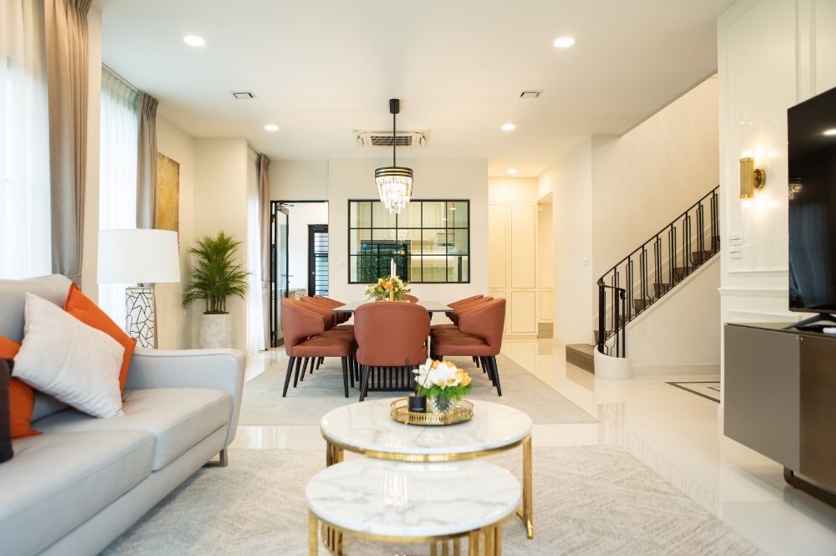 AG Ready to move in. New home for rent. Nantawan Rama 9-New Krungthepkreetha 111.6 sq.wa. 302 sq.m. 4 bedrooms, 1 workroom, 1 maidroom, 6 bathrooms. Fully furnished. Wi-Fi high speed internet, washing