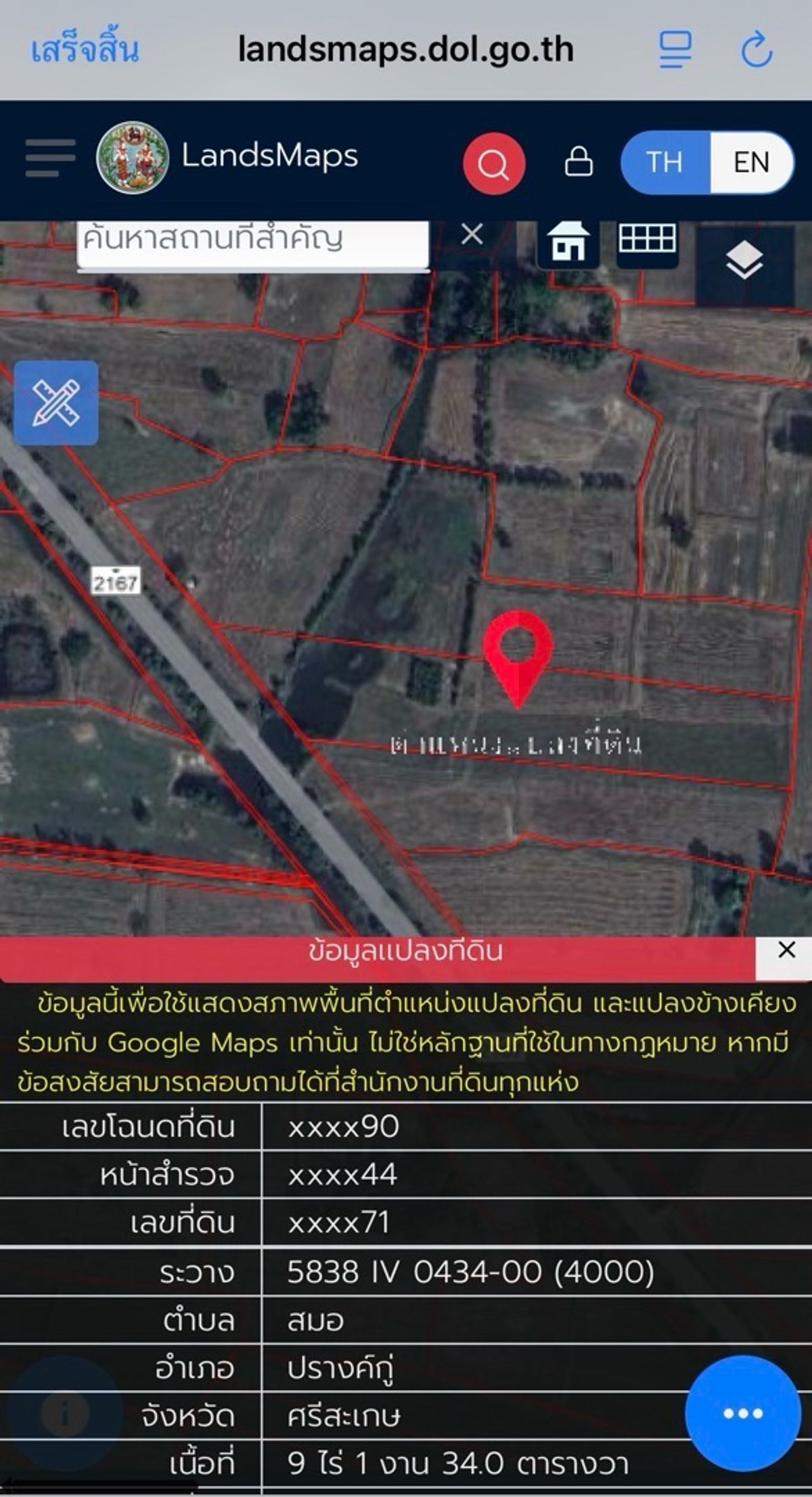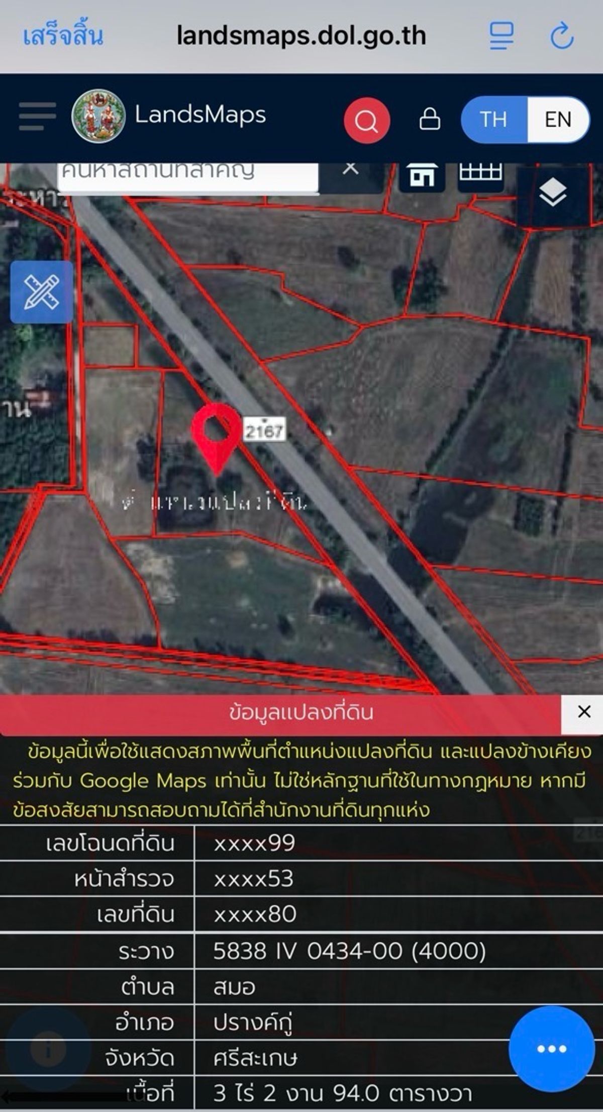 ขายที่ดิน(ติดถนน) อ.ปรางค์กู่ จ.ศรีสะเกษ