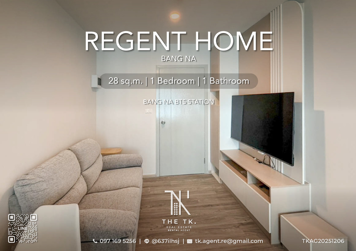 [THE TK.] ให้เช่าคอนโด : ใกล้ BTS บางนา จ่าย 30,000 เข้าอยู่ได้เลย "Regent Home Bangna" ห้องใหม่ ราคาดีที่สุด | ติดต่อคุณทีเค Line ID @637ilhsj Property Code…: TKAG20251206 Regent Home Bangna ตัวเลือกที่น่าสนใจ ได้ห้องขนาดพอดี ในราคาที่ดีกว่า แต่ยังเดินทางได้สะดวกเหมือนเดิม ✨ Project……………..: Regent Home Bangna Monthly Rent……: THB 10,000 Unit Type………….: 1 Bedroom, 1 Bathroom Unit Size…………..: 28 sq.m. Floor………………...: 29 Building…………….: A Location……………: BTS บางนา Fully furnished with electrical appliances. รายการเครื่องใช้ไฟฟ้า - เครื่องปรับอากาศ - TV - ตู้เย็น - เครื่องซักผ้า - ไมโครเวฟ - เครื่องทำน้ำอุ่น รายการเฟอร์นิเจอร์ - เตียง - โซฟา - ตู้/ชั้นวาง TV บิ้วอิน - เคาน์เตอร์ครัวบิ้วอิน - ตู้เสื้อผ้าบิ้วอิน - โต๊ะรับประทานอาหาร 2 ที่นั่ง สิ่งอำนวยความสะดวก - ลิฟท์ - Keycard ล็อคชั้น - ที่จอดรถยนต์ - ที่จอดรถจักรยาน - การรักษาความปลอดภัย 24 ชั่วโมง - กล้องวงจรปิด (CCTV) - สระว่ายน้ำ - ฟิตเนส - สวนหย่อม - ร้านค้า/ร้านอาหารในโครงการ - ระบบอ่านป้ายทะเบียนเข้าออกโครงการ สถานที่สำคัญใกล้เคียง - รถไฟฟ้า BTS บางนา - จุดขึ้นลงทางด่วนด่านบางนา 200 เมตร - Bitec - True Digital park - Central Bangna - Mega Bangna - 7-11 สัญญาขั้นต่ำ 1 ปี ค่าเช่าล่วงหน้า 1 เดือน : 10,000 บาท ค่าประกันความเสียหาย 2 เดือน : 20,000 บาท นัดชมห้องจริงติดต่อ THE TK. REAL ESTATE RENTAL AGENT 📞 PHONE...: คลิกเพื่อดูเบอร์โทรติดต่อ 💬 LINE ID...: @637ilhsj (https://lin.ee/vrFUNkB) ✉️ EMAIL…..: คลิกเพื่อดูอีเมล ช่องทางการติดตาม TIKTOK….……: @the.tk.agent INSTAGRAM..: the.tk.agent YOUTUBE..….: @the.tk.realestateagent #คอนโดบางนา #RegentHomeBangna #คอนโดใกล้BTS #คอนโดให้เช่า #THETK #THETKRENTALAGENT[THE TK.] ให้เช่าคอนโด : ใกล้ BTS บางนา จ่าย 30,000 เข้าอยู่ได้เลย "Regent Home Bangna" ห้องใหม่ ราคาดีที่สุด | ติดต่อคุณทีเค Line ID @637ilhsj Property Code…: TKAG20251206 Regent Home Bangna ตัวเลือกที่น่าสนใจ ได้ห้องขนาดพอดี ในราคาที่ดีกว่า แต่ยังเดินทางได้สะดวกเหมือนเดิม ✨ Project……………..: Regent Home Bangna Monthly Rent……: THB 10,000 Unit Type………….: 1 Bedroom, 1 Bathroom Unit Size…………..: 28 sq.m. Floor………………...: 29 Building…………….: A Location……………: BTS บางนา Fully furnished with electrical appliances. รายการเครื่องใช้ไฟฟ้า - เครื่องปรับอากาศ - TV - ตู้เย็น - เครื่องซักผ้า - ไมโครเวฟ - เครื่องทำน้ำอุ่น รายการเฟอร์นิเจอร์ - เตียง - โซฟา - ตู้/ชั้นวาง TV บิ้วอิน - เคาน์เตอร์ครัวบิ้วอิน - ตู้เสื้อผ้าบิ้วอิน - โต๊ะรับประทานอาหาร 2 ที่นั่ง สิ่งอำนวยความสะดวก - ลิฟท์ - Keycard ล็อคชั้น - ที่จอดรถยนต์ - ที่จอดรถจักรยาน - การรักษาความปลอดภัย 24 ชั่วโมง - กล้องวงจรปิด (CCTV) - สระว่ายน้ำ - ฟิตเนส - สวนหย่อม - ร้านค้า/ร้านอาหารในโครงการ - ระบบอ่านป้ายทะเบียนเข้าออกโครงการ สถานที่สำคัญใกล้เคียง - รถไฟฟ้า BTS บางนา - จุดขึ้นลงทางด่วนด่านบางนา 200 เมตร - Bitec - True Digital park - Central Bangna - Mega Bangna - 7-11 สัญญาขั้นต่ำ 1 ปี ค่าเช่าล่วงหน้า 1 เดือน : 10,000 บาท ค่าประกันความเสียหาย 2 เดือน : 20,000 บาท นัดชมห้องจริงติดต่อ THE TK. REAL ESTATE RENTAL AGENT 📞 PHONE...: คลิกเพื่อดูเบอร์โทรติดต่อ 💬 LINE ID...: @637ilhsj (https://lin.ee/vrFUNkB) 