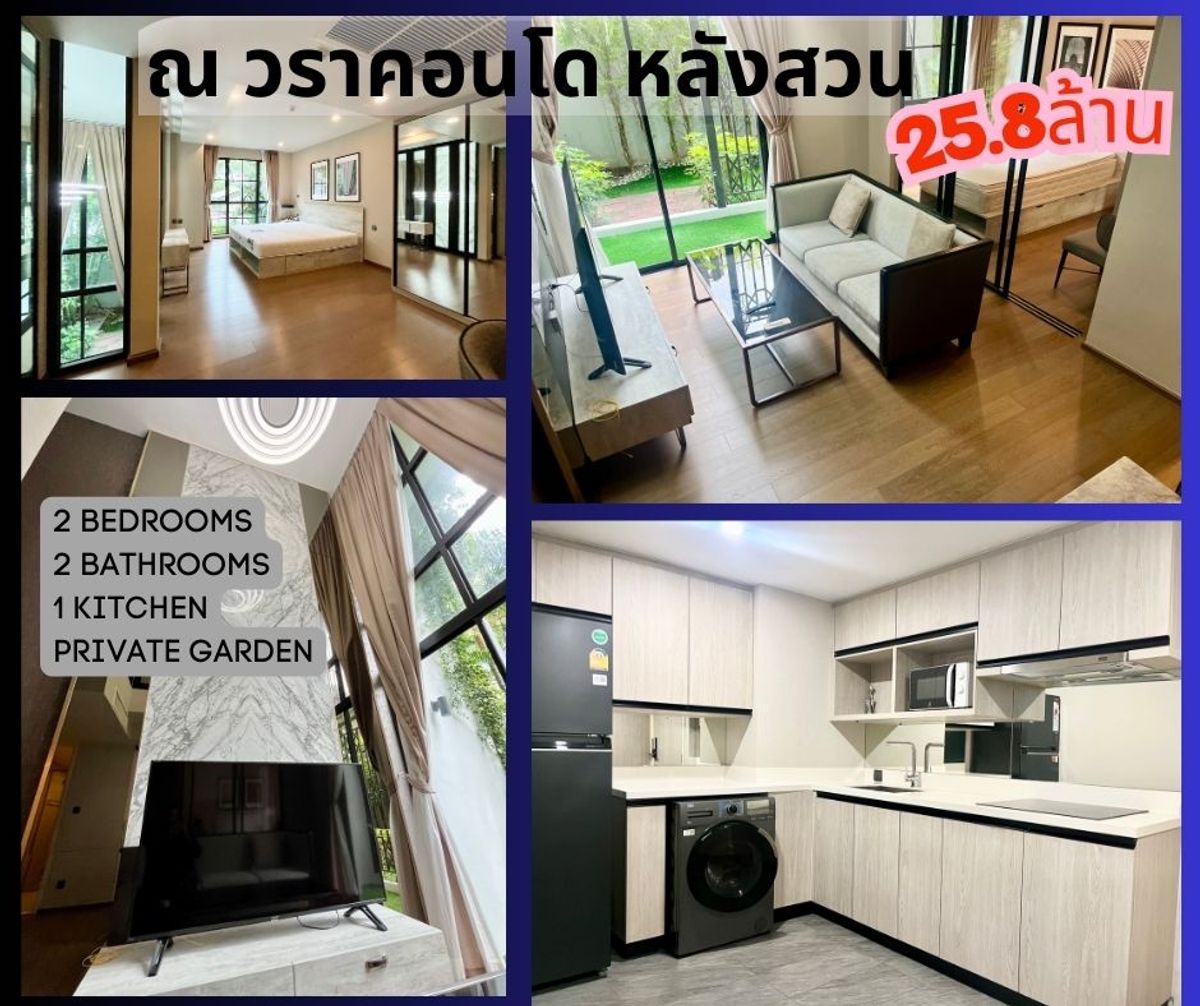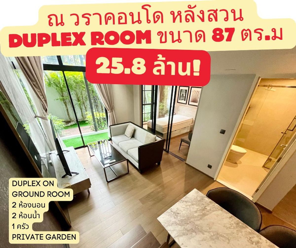 คอนโด 2 ห้องนอน 2 ห้องน้ำ ขนาด 87 ตารางเมตร ชั้น 1-2, 25.8 ล้านบาท โครงการ ณ วรา เรสซิเดนส์ ซึ่งตั้งอยู่ในเขตปทุมวัน ใกล้ BTS ชิดลม และใกล้ ARL ราชปรารภ ภายในห้อง อยู่ชั้นล่างสุดเป็นห้อง Duplex พร้อมสวนส่วนตัว เหมือนอยู่บ้าน เพดานสูง โปร่งสบาย มีทีวี แอร์ ตู้เย็น เตา ไมโครเวฟ เครื่องซ้กผ้า สามารถเข้าอยู่ได้เลย ทำเลทอง พื้นที่ส่วนกลาง: * ระบบรักษาความปลอดภัย 24 ชม. * สระว่ายน้ำ * ฟิตเนส * กล้องวงจรปิด * สวน * ดาดฟ้า สระว่ายน้ำ ทำเลศักยภาพตั้งอยู่บนที่ดินในย่านเพลินจิต ชิดลม ที่ราคาประเมินสูงที่สุดในประเทศไทย ใกล้ BTS ชิดลมเพียง 900 เมตร เดินเชื่อมได้หมดตั้งแต่ เมอร์คิวรี่วิลล์ เซ็นทรัลชิดลม เพียง 400 เมตร เซ็นทรัลเอ็มบาสซี โฮมโปร ส่วนกลาง สวนสวยทั้งด้านหน้าและหลังโครงการ ห้องสมุด/ห้องอ่านหนังสือกว้างขวาง ยิมออกกำลังกายและสระว่ายน้ำ เข้าออก เสริมความปลอดภัยด้วยคีย์การ์ดกดลิฟท์เข้าออกได้เฉพาะชั้นที่พักอาศัย ต้องใช้การ์ดลงลิฟท์เข้าออกที่จอดรถ มี doorman คอนโดทำเลดีมีที่จอดรถได้มากมาย Starbucks ใกล้ที่สุด เพียง 100 เมตร สนใจติดต่อ คลิกเพื่อดูเบอร์โทรติดต่อ เหม่ย
