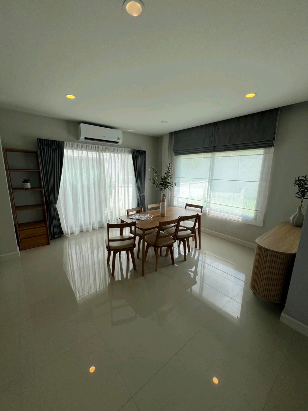 บ้านเดี่ยวให้เช่า – The Citi รามอินทรา 🏡 บ้านสวย เงียบสงบ เฟอร์นิเจอร์ครบ พร้อมอยู่ทันที พื้นที่ 77 ตร.วา พื้นที่ใช้สอยประมาณ 200 ตร.ม. 4 ห้องนอน🛌 / 3 ห้องน้ำ🛀 / 1 ห้องนั่งเล่น🛋️ / 1 โถงรับรอง ครัวแยก, มีพื้นที่หลังบ้าน, จอดรถในร่มได้ 2 คัน 🚘 เฟอร์นิเจอร์และเครื่องใช้ไฟฟ้าใหม่ทั้งหมด (โซฟา 2 ชุด / ทีวี 2 เครื่อง / เตียง 2 / ตู้เสื้อผ้า / โต๊ะเครื่องแป้ง / ชุดโต๊ะทานข้าว/ แอร์ครบทุกห้อง รวมห้องโถง) บ้านอยู่โซนด้านใน เงียบสงบ ใกล้คลับเฮาส์ ฟิตเนส และสระว่ายน้ำ เจ้าของดูแลเอง มีทีมช่างพร้อมให้บริการซ่อมแซมเล็ก-น้อยหรือกรณีเร่งด่วน 📍 ทำเล: โครงการ The Citi รามอินทรา เดินทางสะดวก ใกล้ทางด่วน, รถไฟฟ้า, และเซ็นทรัลรามอินทรา 💰 ค่าเช่า: 42,000 บาท/เดือน (รวมค่าส่วนกลางแล้ว) --- 🇬🇧 English Version (for expat listing) Modern Single House for Rent – The Citi Ramintra Fully furnished, brand-new condition, move-in ready Land area: 77 sq.wah Living area: ~200 sq.m. 4 bedrooms, 3 bathrooms, 1 living rooms, and 1 living halls Separated kitchen with backyard area Covered parking for 2 cars Fully equipped with new furniture and appliances (2 sofas, 2 TVs, 2 beds, wardrobes set, dressing tables, and all rooms equipped with air-conditioners ) Located in a peaceful inner zone, close to the clubhouse, swimming pool, and fitness center Owner-managed with in-house technician team for quick maintenance service 📍 Location: The Citi Ramintra – easy access to expressway, BTS, and Central Ramintra 💰 Rental price: THB 42,000/month (negotiable, including common fee)