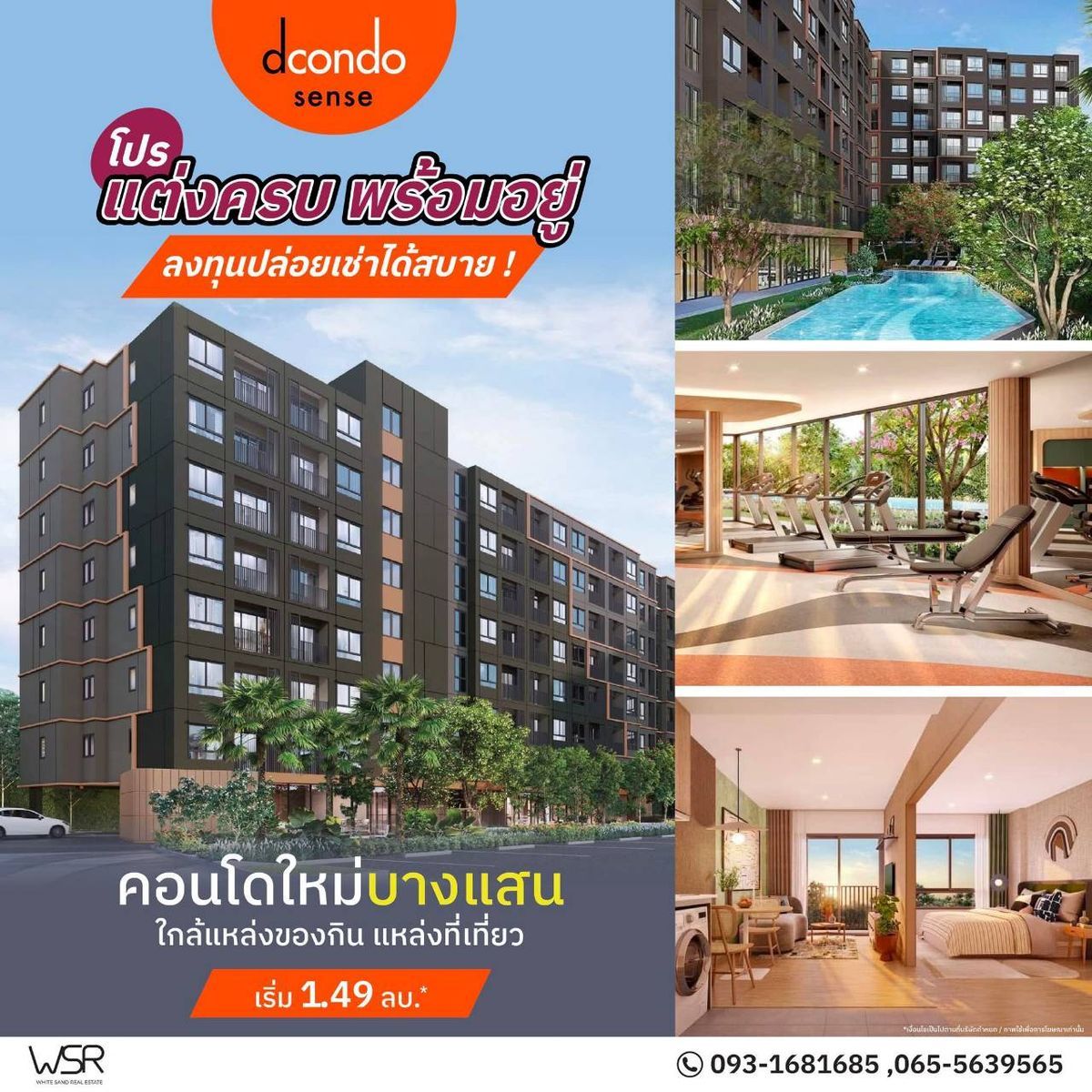 𝘿𝘾𝙊𝙉𝘿𝙊 𝙎𝙀𝙉𝙎𝙀 𝘽𝘼𝙉𝙂𝙎𝘼𝙀𝙉🌟โปรพิเศษ! ฟรีเฟอร์ฯ + เครื่องใช้ไฟฟ้า พร้อมสิทธิพิเศษอีกมากมาย รีบจองก่อนห้องสวยหมด! 📞065-5639565 💚LINE: @wsrcondo