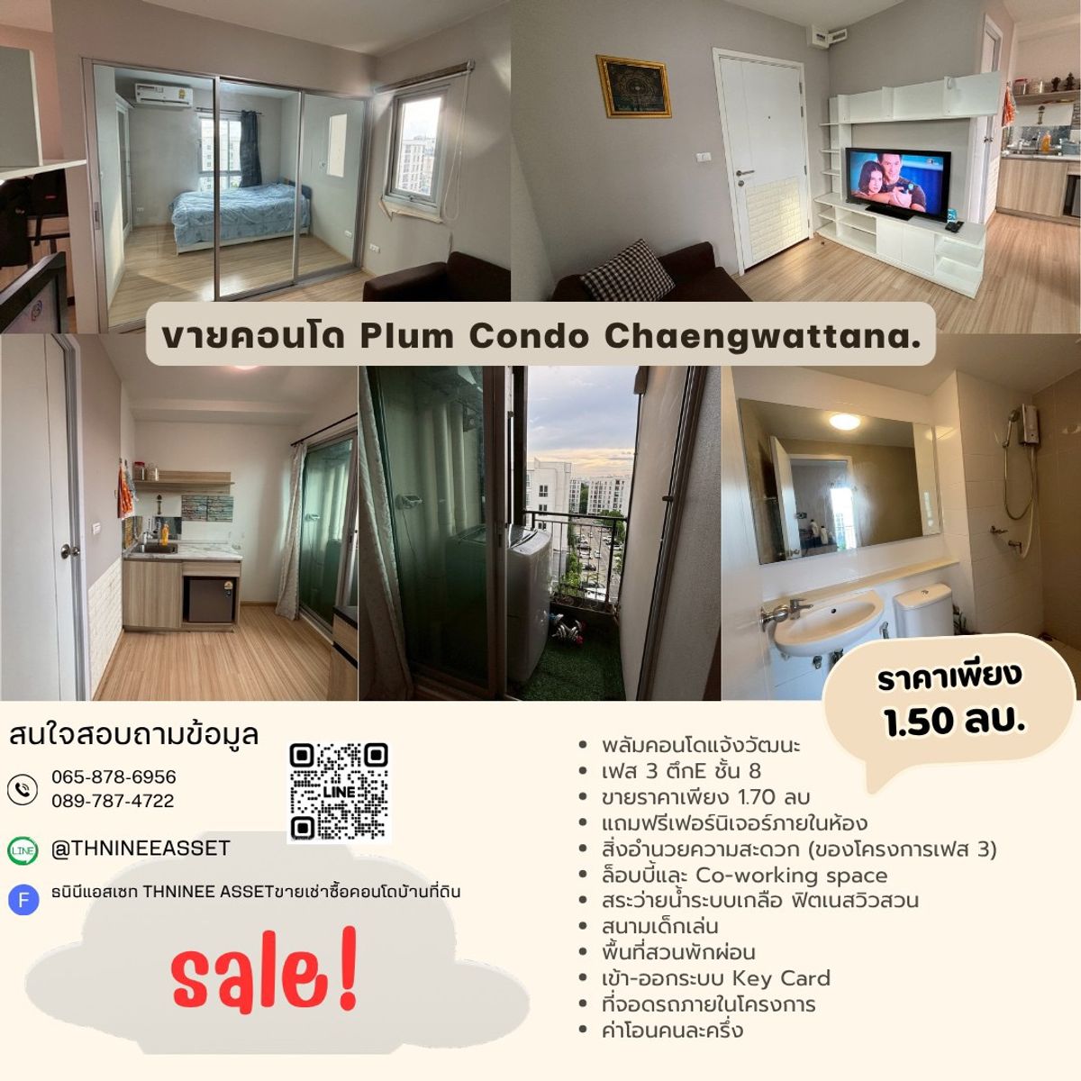 🏡 #ขายพลัมคอนโดแจ้งวัฒนะ เฟส 3 (Plum Condo Chaengwattana Phase 3) 📍 ตึก E ชั้น 8 | พื้นที่ 23 ตร.ม. 💰 ราคาพิเศษเพียง 1,500,000 บาทเท่านั้น! ✨ พร้อมเฟอร์นิเจอร์และเครื่องใช้ไฟฟ้าครบชุด เข้าอยู่ได้ทันที