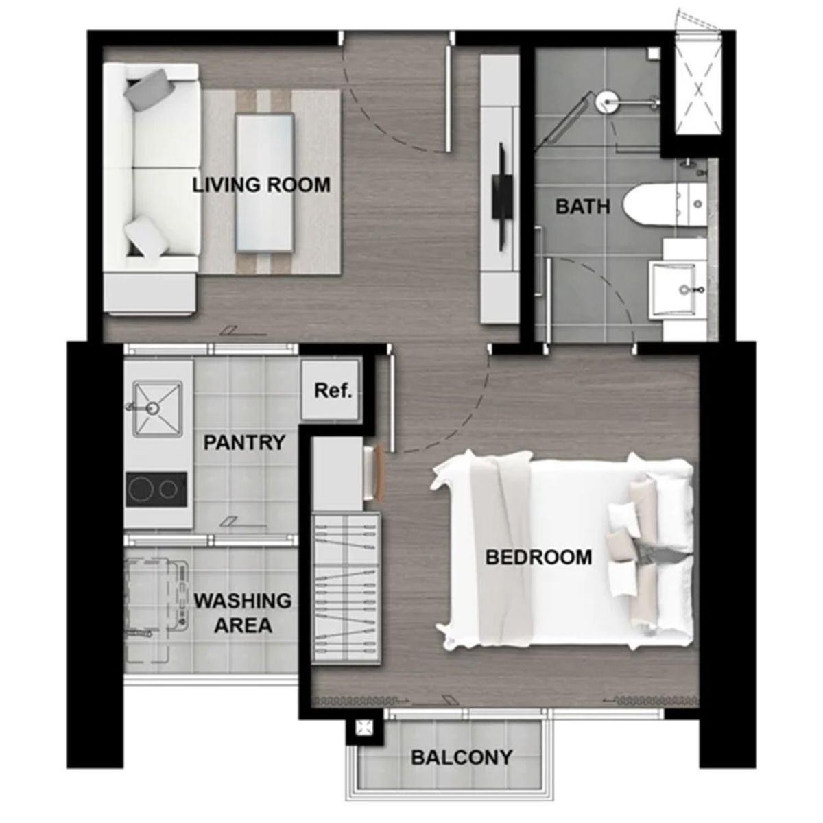 ซื้อวันนี้ = มีคนช่วยผ่อนตั้งแต่วันแรก ทรัพย์เพิ่มมูลค่าทุกปี ลงทุนได้ อยู่เองก็คุ้ม! ห้องสวย 29.84 ตร.ม. 1 ห้องนอน 1 ห้องน้ำ พร้อมอยู่ เฟอร์ครบ Built-in Modernform + เครื่องใช้ไฟฟ้าครบชุด (ทีวี 55, ต
