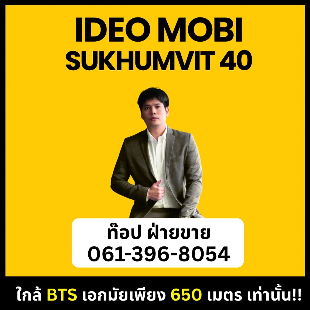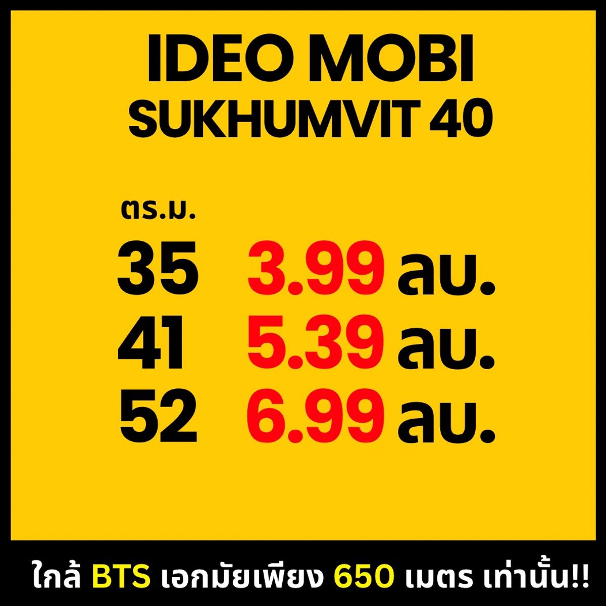 โปรปิดตึก!!! Ideo Mobi Sukhumvit 40 ทุบราคากระหน่ำ จำนวนจำกัด คอนโด Low Rise ใกล้ BTS เอกมัยเพียง 650 เมตรเท่านั้น!!! ในราคาต่อตร.ม เหลือเพียง 11x,xxx บาท เท่านั้น ขนาดห้อง 35 ตร.ม เริ่ม 3,990,000 บาท Tiktok Video Video 35 ตร.ม. : https://vt.tiktok.com/ZSUXFReqm/ Video 41 ตร.ม : https://vt.tiktok.com/ZSUXF4nmh/ Video 52 ตร.ม : https://vt.tiktok.com/ZSUXF5XQc/ เป็น Low Rise ที่มีจำนวนยูนิตน้อย และ ให้ความเป็นส่วนตัวที่สูงมาก 35 ตร.ม สามารถปล่อยเช่าได้ในราคา 25,000 บาท / เดือน เหลือยูนิตไม่มากแล้ว เข้าชมโครงการด่วน!!! โทร ท๊อป ฝ่ายขาย Ananda คลิกเพื่อดูเบอร์โทรติดต่อ หรือ Line : Topz247 โอกาสนี้พลาดแล้ว จะเสียดายแรงมาก! #คอนโดติดรถไฟฟ้า #Ananda #ideomobisukhumvit40