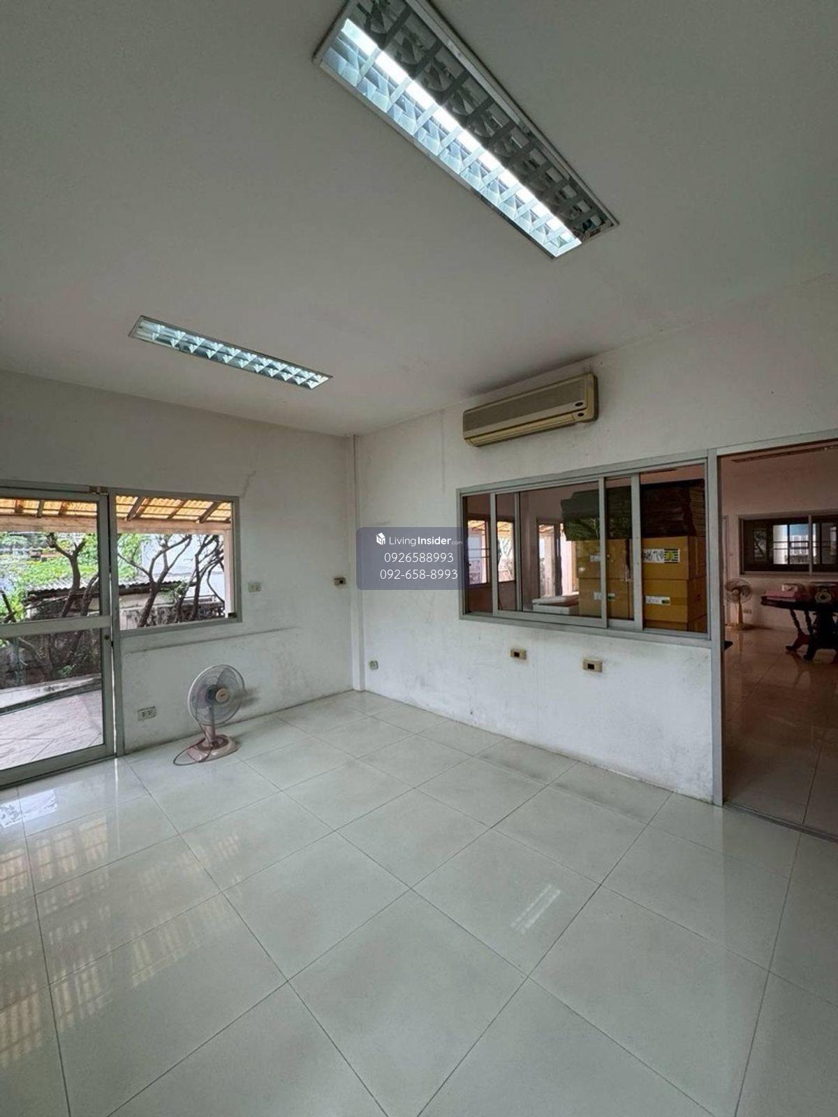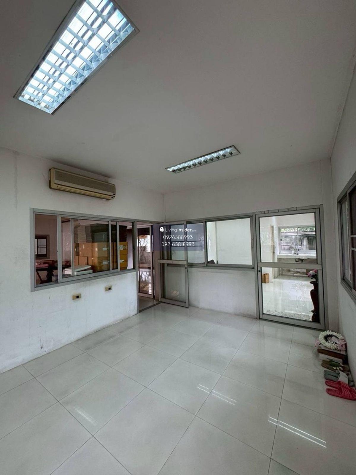 ขาย /เช่า บ้าน 93 ตร.วา ปรีดีพนมยงค์ ค่าเช่า 100,000 บาทต่อเดือน บ้านเดี่ยวหนึ่งชั้น พื้นที่ 300 ตารางเมตร ห้องน้ำ ห้องทำงาน ห้องเก็บของ ออฟฟิศ ที่จอดรถ 2-3 คัน เชื่อมต่อ กับ ห้องโถง บ้านพักคนงาน 2 ชั