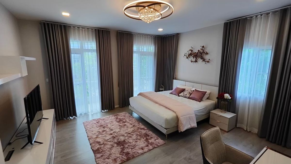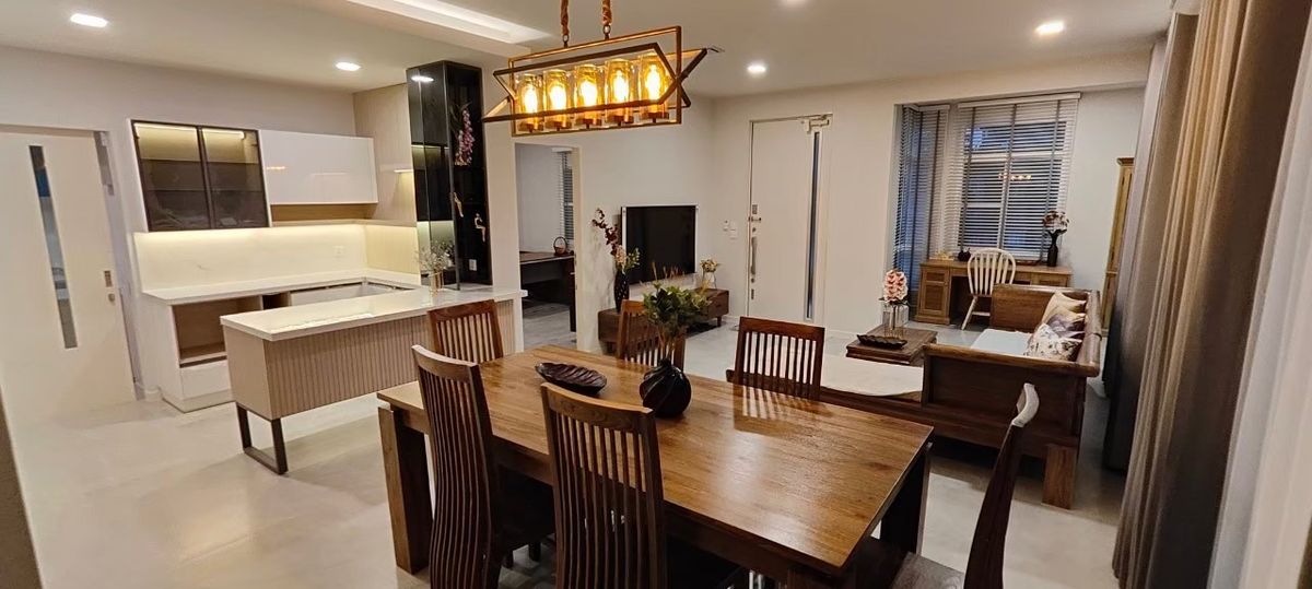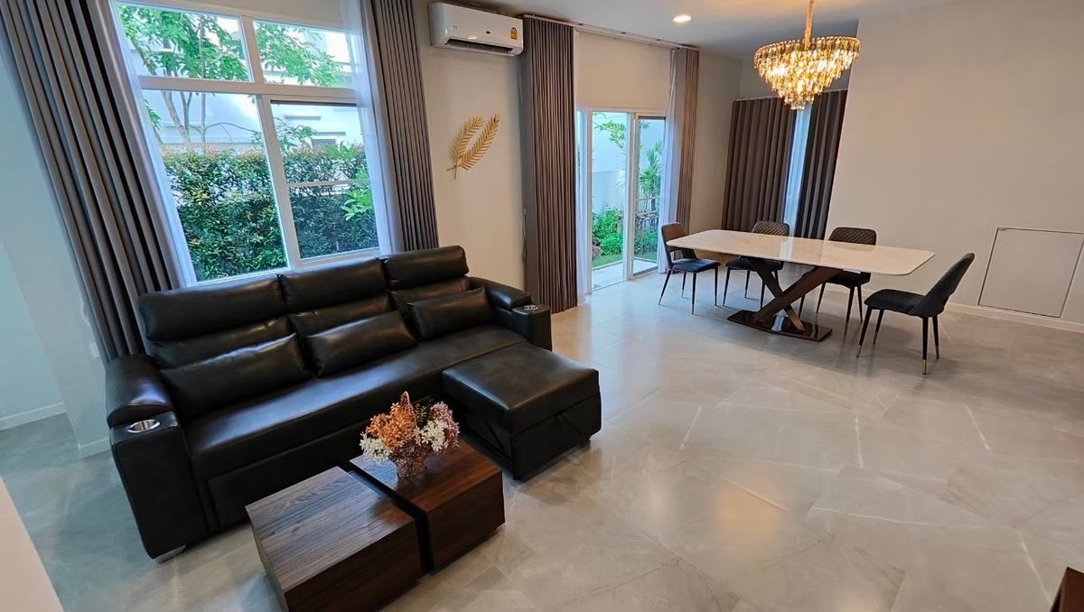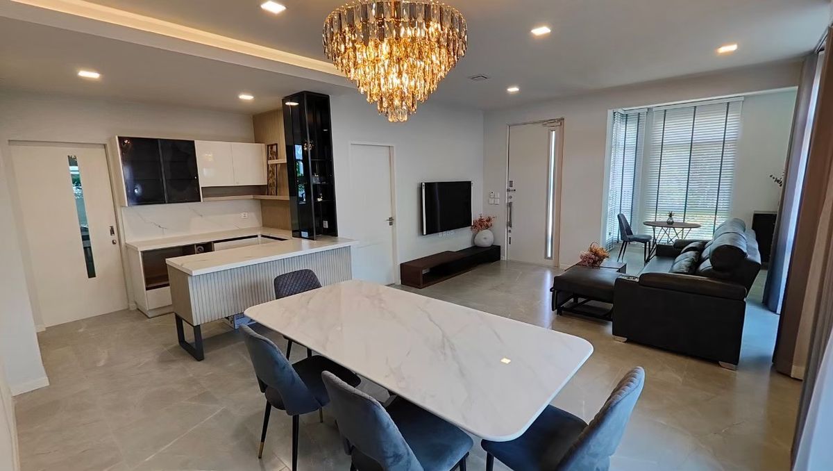 ขายบ้านเดี่ยว 3 หลังติดกัน ถนนเมนหมู่บ้าน เข้าออกได้สองทาง ถ.กาญจนา​ภิเษก และ ถ.รามคำแหง 2 ทำเลดีมาก มีโรงเรียนอินเตอร์ Dulwich ตั้งอยู่ด้านหน้าหมู่บ้าน กำลังจะเปิดสิงหาคม 2026 นี้ ขนาดที่ดิน 82, 73 และ 72 ตรว. พื้นที่ใช้สอยเท่ากัน 222 ตรม. (รวม 666 ตรม.) หันหน้าทิศเหนือ ใกล้สวนส่วนกลางเฟส 2 บ้านอายุ 3 ปี สภาพใหม่ ขายพร้อมเฟอร์นิเจอร์ตามรูป ปัจจุบันมีผู้เช่าอยู่ 2 หลัง ขายรวมที่ 60 ล้านบาท ถ้าสนใจซื้อเป็นคู่สามารถแจ้งได้ครับ ติดต่อ คลิกเพื่อดูเบอร์โทรติดต่อ