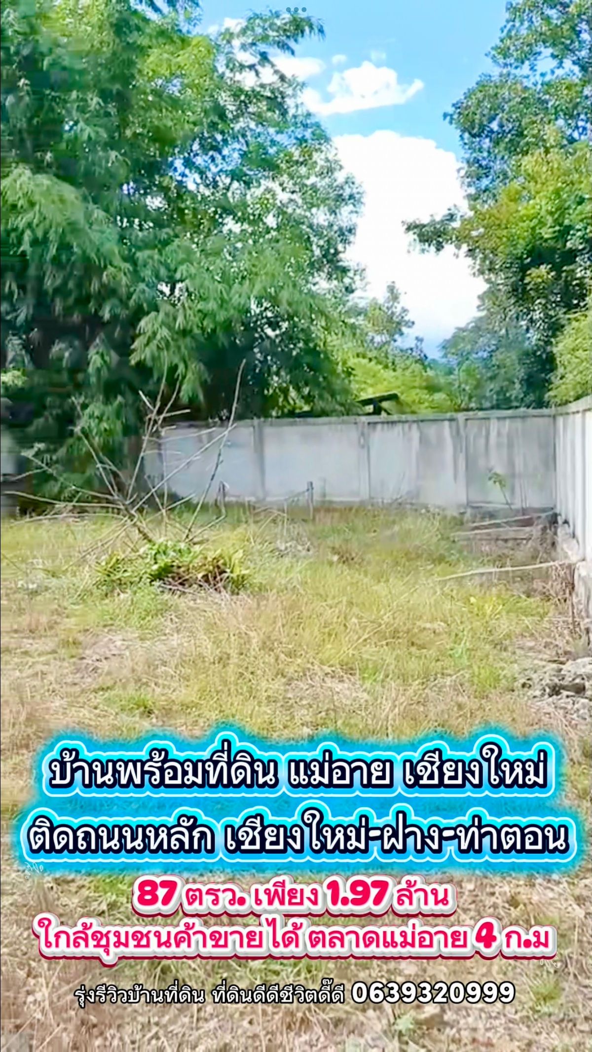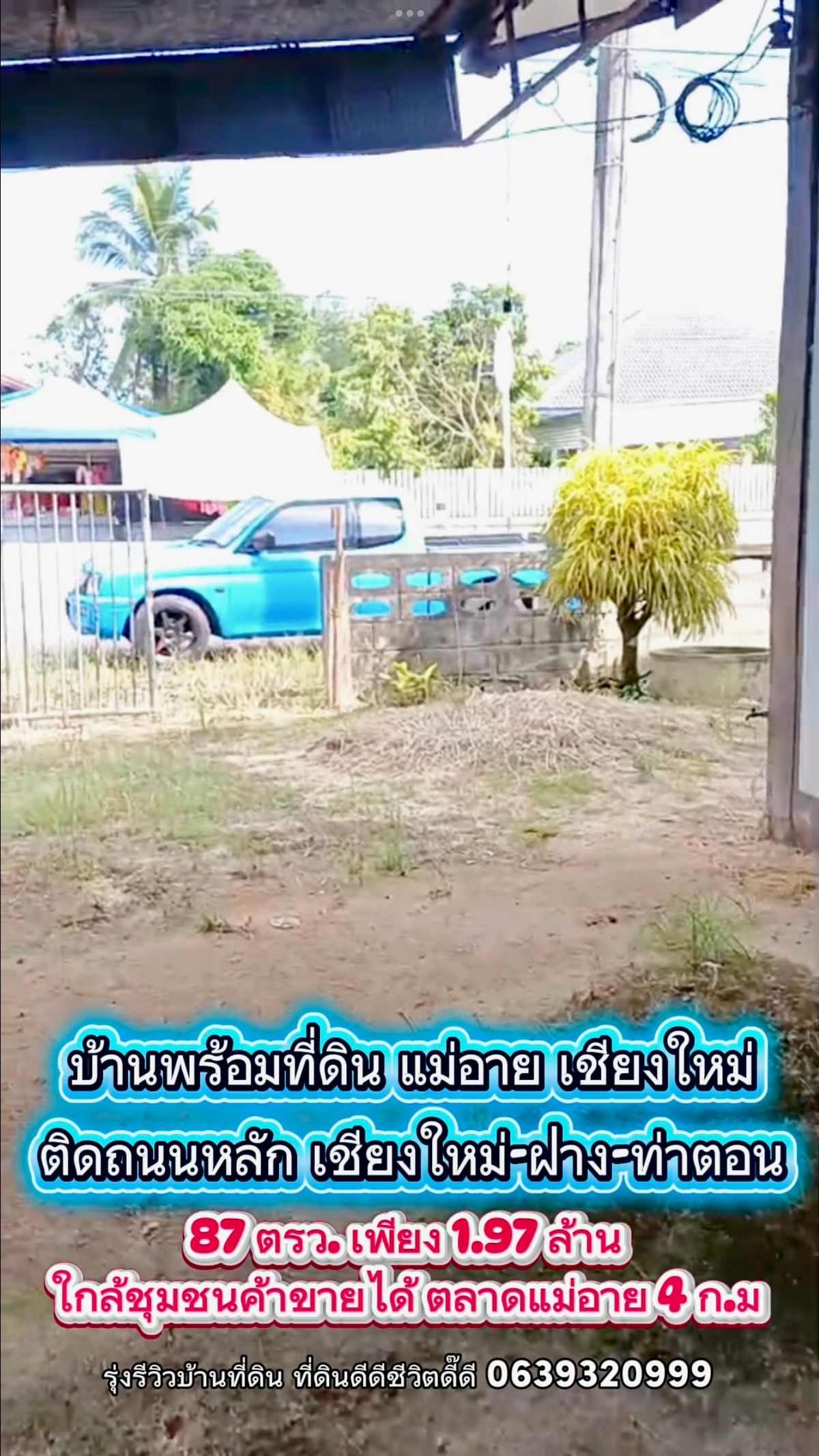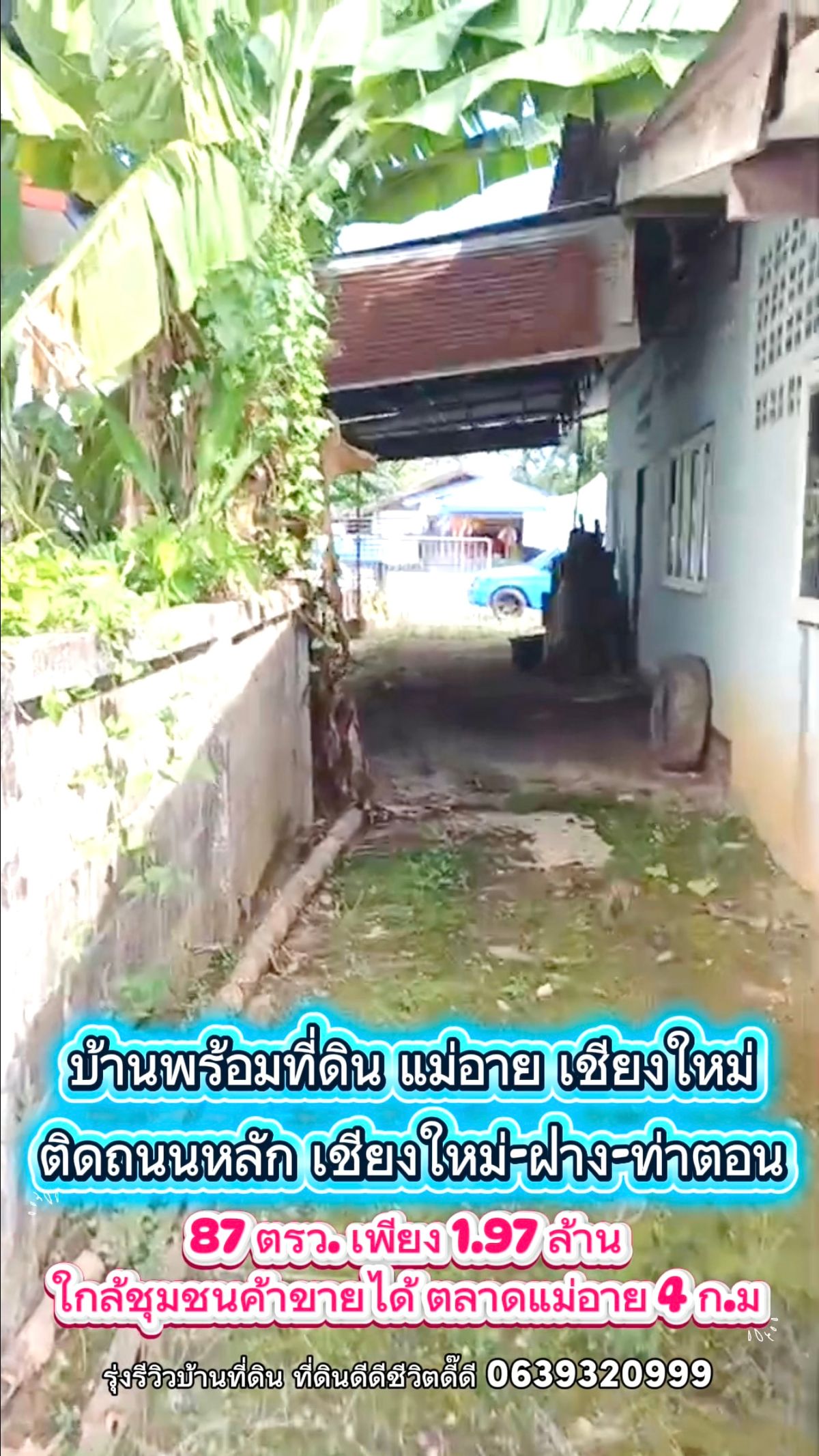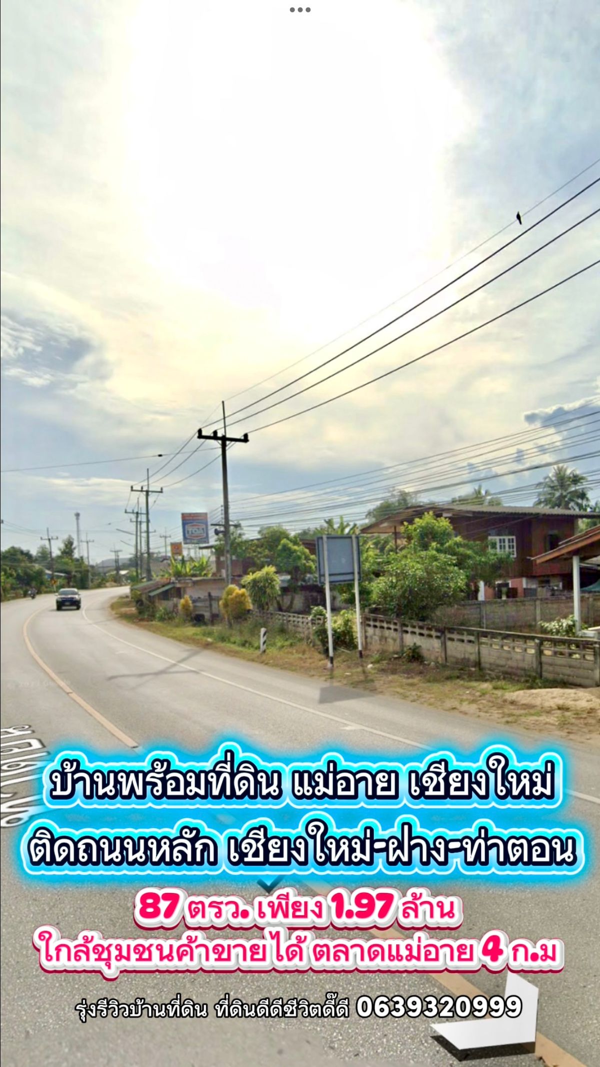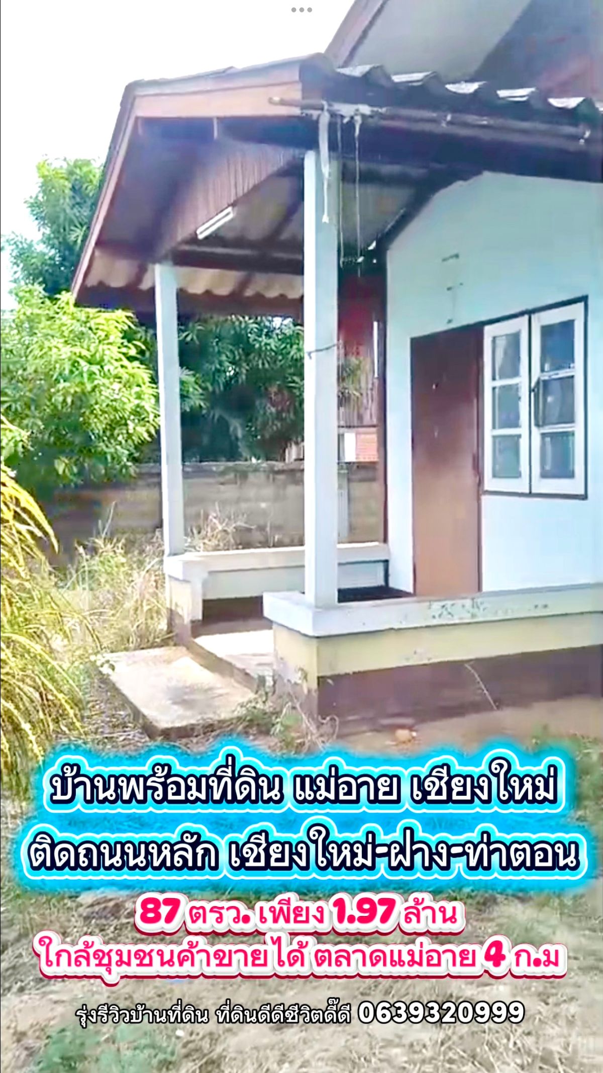 ใกล้หน้าหนาวแล้วพาขึ้นเหนือ ใครชอบบรรยากาศทางเหนือสนใจไปสร้างหลักปักฐาน มีที่ทำเลดีพร้อมบ้าน ติดถนนหลัก อำเภอแม่อาย จังหวัดเชียงใหม่ มาฝาก บ้านพร้อมที่ดิน ขนาด 87 ตรว. ตำบลแม่สาว อำเภอแม่อาย จังหวัดเชียงใหม่ ติดถนนหลัก เชียงใหม่-ฝาง-ท่าตอน ค้าขายได้ใกล้ชุมชน สถานที่สำคัญใกล้เคียงแหล่งท่องเที่ยว วัดแม่สาว 550 เมตร ที่ว่าการอำเภอแม่อาย 4 ก.ม ตลาดสด,โลตัส 5.3 ก.ม รพ. แม่อาย 6 ก.ม วัดท่าตอน 13 ก.ม พระเจดีย์แก้ว 14 ก.ม โครงการบ้านเล็กในป่าใหญ่ดอยผ้าห่มปก 17 ก.ม อุทยานแห่งชาติดอยผ้าห่มปก 22 ก.ม ลานกางเต็นท์กิ่วลม 22 ก.ม บ่อน้ำพุร้อนฝาง 22 ก.ม เชียงราย 100 ก.ม เชียงใหม่ 159 ก.ม บ้านพร้อมที่ดิน 87 ตรว. 1.97 ล้าน สอบถามเพิ่มเติม รุ่ง คลิกเพื่อดูเบอร์โทรติดต่อ #บ้านพร้อมที่ดิน #บ้านแม่อายเชียงใหม่ #ที่ดินติดถนนค้าขายได้ #ที่ดินแปลงเล็ก #ที่ดินภาคเหนือ #บ้านเชียงใหม่ #รุ่งรีวิวที่ดิน #ที่ดินดีดีชีวิตดี๊ดี