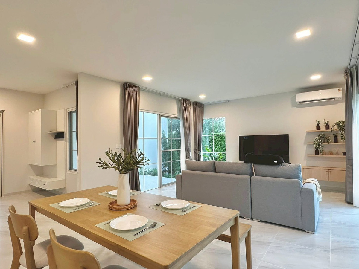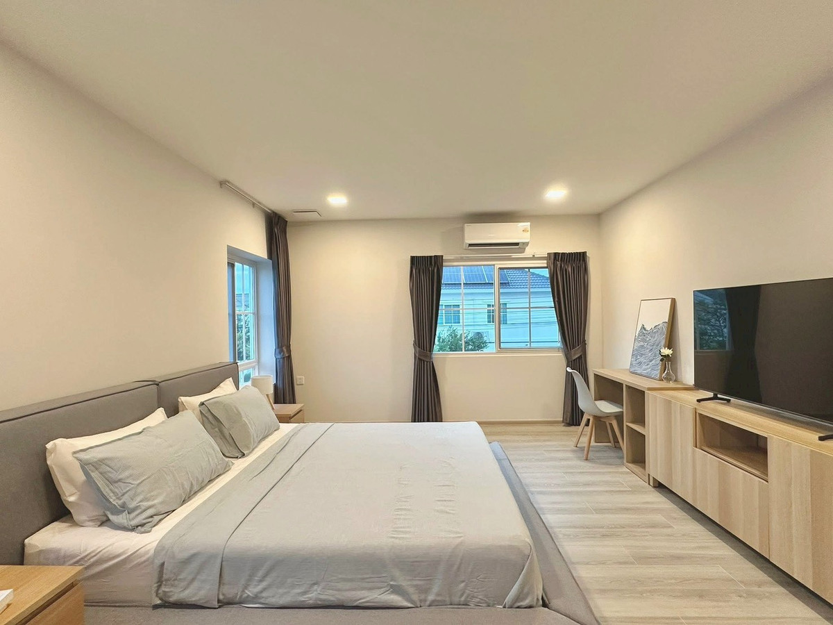 🏡 บ้านเดี่ยวให้เช่า แปลงมุม พร้อมอยู่ หมู่บ้านชัยพฤกษ์ บางนา กม.15 3 ห้องนอน 4 ห้องน้ำFully Furnished บ้านใหม่ สวย สะอาด พร้อมย้ายเข้า 💸 ค่าเช่า 85,000 บาท / เดือน 📍 บ้านแปลงมุม พื้นที่กว้าง โปร่ง สงบ อยู่ในโซนหน้าโครงการ 📏 ขนาดที่ดิน 62.2 ตร.วา | พื้นที่ใช้สอย 184 ตร.ม. ✅ รายละเอียดบ้าน: 3 ห้องนอน 4 ห้องน้ำ 1 ห้องนั่งเล่น 1 ห้องรับประทานอาหาร 1 ห้องครัว (built-in ครบชุด) 1 พื้นที่ทำงาน / มุมออฟฟิศ จอดรถในบ้านได้ 2 คัน แอร์ 5 เครื่อง ทีวี 2 เครื่อง (ห้องนั่งเล่น + ห้องนอนใหญ่) ตู้เย็น / ไมโครเวฟ / เครื่องซักผ้า / เครื่องทำน้ำอุ่น ประตูรั้วบ้านเลื่อนอัตโนมัติ แปลงมุม มีพื้นที่รอบบ้าน กว้างขวาง เป็นส่วนตัว 🐶 สัตว์เลี้ยงรับพิจารณาเป็นรายกรณี 🚭 งดสูบบุหรี่ภายในบ้าน 🛋 เฟอร์นิเจอร์ครบ: เตียง + ที่นอน (ทุกห้องนอน) โซฟา + โต๊ะกลาง โต๊ะกินข้าว ตู้เสื้อผ้าบิ้วอิน เคาน์เตอร์ครัว + เตาไฟฟ้า + เครื่องดูดควัน 🌳 สิ่งอำนวยความสะดวกในโครงการ: รปภ. 24 ชม. + กล้องวงจรปิด คลับเฮ้าส์ สระว่ายน้ำ ฟิตเนส สวนสาธารณะ ถนนในโครงการกว้าง สงบ ร่มรื่น 📍 สถานที่สำคัญใกล้เคียง: สนามบินสุวรรณภูมิ — 15 นาที VERSO International School — 4 กม. The American School of Bangkok (Green Valley Campus) — 5.5 กม. Mega Bangna / IKEA — 6 กม. Central Village Luxury Outlet — 10 กม. ใกล้ทางด่วนบูรพาวิถี และวงแหวนรอบนอก โรงพยาบาลจุฬารัตน์ 9 / โรงพยาบาลบางนา 5 รร.ราชวินิตบางแก้ว / รร.นานาชาติคอนคอร์เดียน เงื่อนไขสัญญา สัญญาเช่าอย่างน้อย 1 ปี มัดจำ 2 เดือน+ล่วงหน้า 1 เดือน สนใจติดต่อสอบถาม รหัสทรัพย์ BK1871 ติดต่อ: คุณแมน คลิกเพื่อดูเบอร์โทรติดต่อ Line ID: @Kinglandcondo (มี @ ด้วยนะครับ) #kinglandestateteam #คิงแลนด์เอสเตสทีม #ให้เช่าบ้านบางนา #บ้านเดี่ยวให้เช่า #บ้านแปลงมุมให้เช่า #ChaiyapruekBangna #บ้านให้เช่าพร้อมเฟอร์ #บ้านใกล้MegaBangna #บ้านใกล้VersoSchool #บ้านใกล้สนามบินสุวรรณภูมิ #บ้านเดี่ยวบางนา