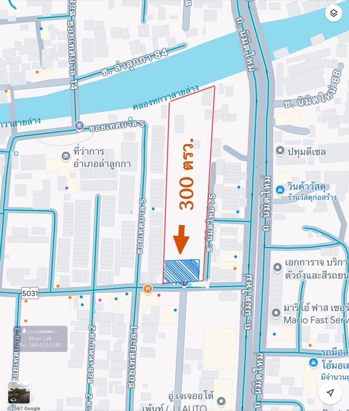ให้เช่าที่ดิน 300 ตรว. ทำเลทอง ติดถนนใหญ่ ใกล้ถนนนิมิตรใหม่ อ.ลำลูกกา คลอง 7 ปทุมธานีใกล้แหล่งชุมชนหมู่บ้านจัดสรรใหม่ **ค่าเช่าที่ดิน 6 ไร่ หน้ากว้าง 48 เมตร 85,000 บาท/เดือน** (สัญญาขั้นต่ำ 3 ปี) – บ้านพัก 3 ห้อง, บ่อน้ำ, ประตูรั้วรอบที่ดิน **แบ่งเช่าด้านหน้า 300 ตรว. หน้ากว้าง 40 เมตรค่าเช่า 45,000 บาท/เดือน** จุดเด่น ทำเลค้าขายดีใกล้ชุมชน** – ตรงข้ามเซเว่นอีเลฟเว่น, ใกล้ตลาดใหญ่ลำลูกกา (750 ม.), ที่ว่าการอำเภอ (400 ม.) **ล้อมรอบด้วยชุมชนหมู่บ้านจัดสรรใหม่** – นักลงทุนมั่นใจ! มีผู้คนหนาแน่น **ถนนหน้าด่านรถผ่านเยอะ** – ติดถนนนิมิตรใหม่ เชื่อมต่อเส้นหลัก - รังสิต-นครนายก - วงแหวนกาญจนาภิเษก - ทางหลวงพิเศษหมายเลข 9 (บางปะอิน-บางพลี) เหมาะสำหรับธุรกิจ **ร้านอาหาร / สวนอาหาร** – ทำเลคนเดินทางผ่านตลอดวัน **คาเฟ่ / ร้านกาแฟ** – ใกล้หมู่บ้านและแหล่งงาน **ศูนย์กระจายสินค้า (Kerry, Shopee, Flash Express)** – ถนนใหญ่ ขนส่งสะดวก **สถานที่ใกล้เคียง – Lotus’s, HomePro, ไทวัสดุ – โรงพยาบาล CGH ลำลูกกา – เตรียมอุดมศึกษา ปทุมธานี, โรงเรียนเฟื่องฟ้าวิทยา – บ้านฟ้ากรีนพาร์ค, นีโอลา, ปิยรมย์ พรีเมียร์พาร์ค **พิกัดที่ดิน:** [Google Maps](13°55'52.9"N 100°45'03.0"E) สนใจสอบถามเพิ่มเติม โทร. ** คลิกเพื่อดูเบอร์โทรติดต่อ** (รับ Co-Agents)