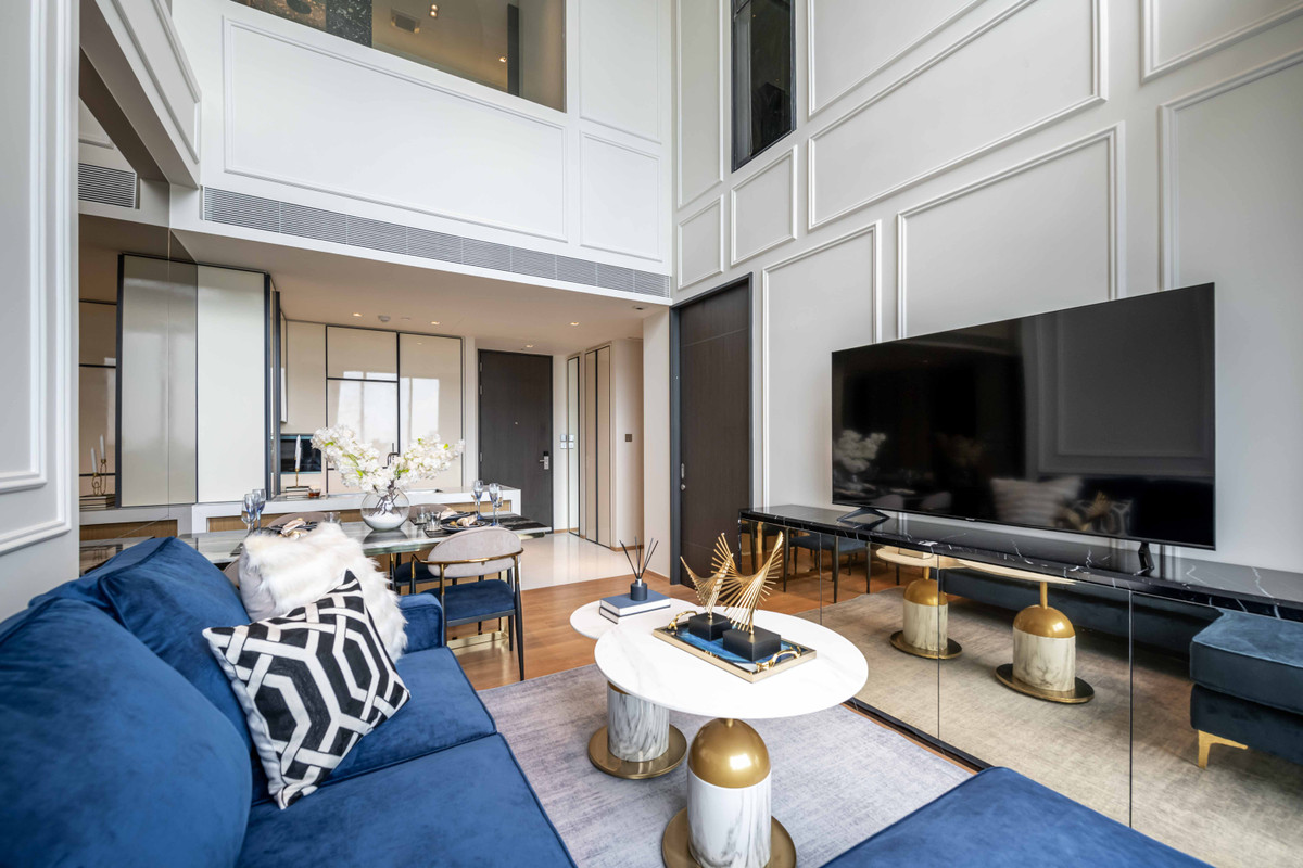 ที่พักอาศัยแบบดูเพล็กซ์ 2 ห้องนอนที่ บีทนิค สุขุมวิท 32 (Beatniq Sukhumvit 32) แห่งนี้ มาพร้อมพื้นที่ใช้สอยขนาด 103 ตารางเมตร ด้วยดีไซน์ร่วมสมัยที่ให้ความรู้สึกโปร่งโล่งด้วยเพดานสูงสองชั้น พื้นที่นั่ง