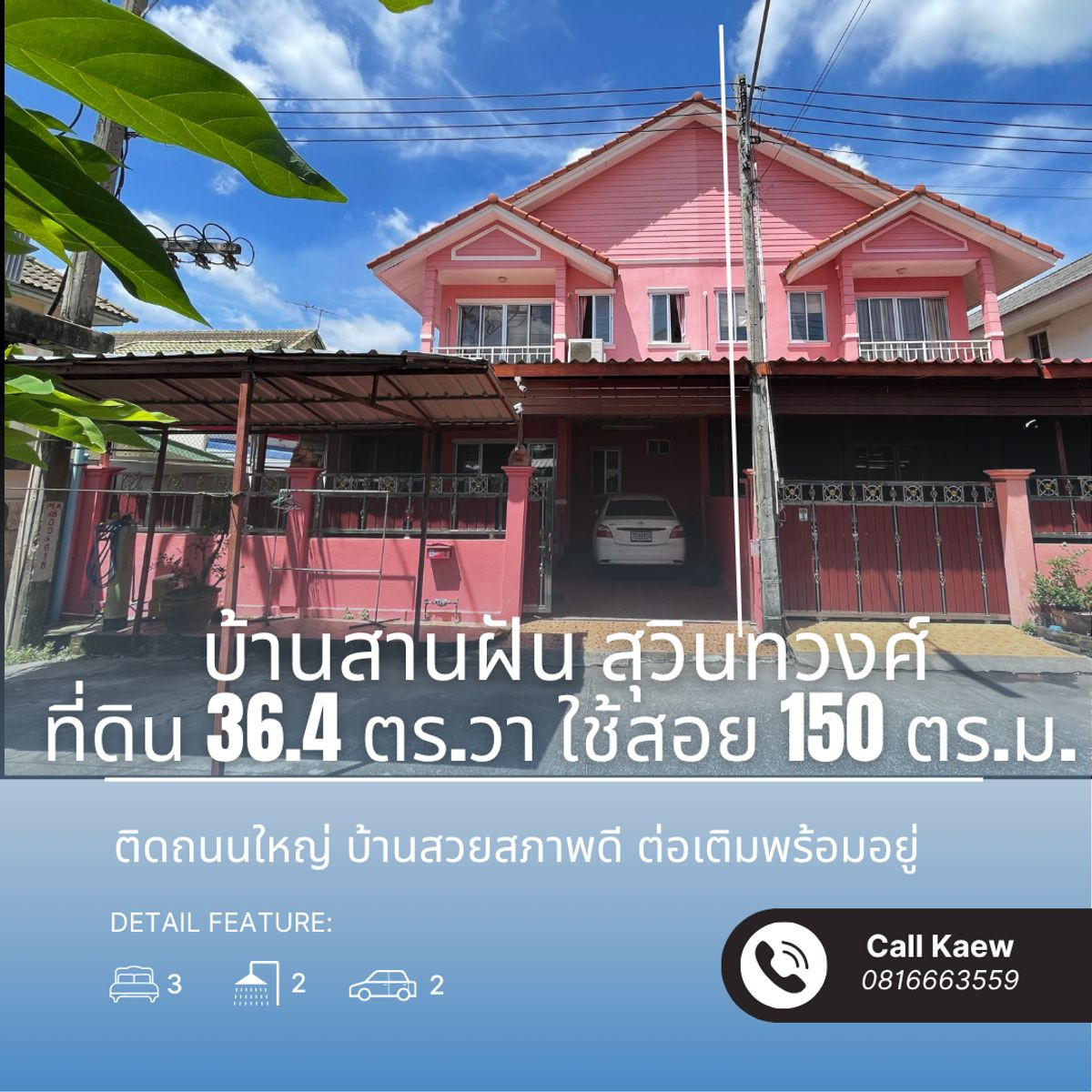 ขายบ้านสานฝัน สุวินทวงศ์ หลังริม สภาพดี 3นอน 2น้ำ หิ้วกระเป๋าเข้าอยู่ได้เลย ใกล้ถนนใหญ่เพียง 1.99ลบ. ***** สนใจรายละเอียดเพิ่มเติม ***** 085,0456936 เบนซ์ ID Line , xeemus - ที่ดิน 36.4 ตร.วา | พื้นที่ใช้สอย 150 ตร.ม. - แบบ 3 ห้องนอน | 2 ห้องน้ำ | 1 ห้องทำงาน (ปรับเป็นห้องนอนผู้สูงอายุได้) - ต่อเติมโรงรถ | ครัวไทยหลังบ้าน - แอร์ 5 เครื่อง | ทีวี | เฟอร์ฯ และเครื่องใช้ไฟฟ้าครบ ครบ จบพร้อมอยู่ - บ้านสวยสภาพดี ไม่เคยปล่ยเช่า เจ้าของดูแลบ้านเป็นอย่างดี ขายเพียง 1.99 ล้าน (ต่อรองได้) ที่ตั้ง: หมู่บ้านสานฝัน สุวินทวงศ์ (ซอยแรกของโครงการ) ตำบลศาลาแดง อำเภอบางน้ำเปรี้ยว ฉะเชิงเทรา 24000 โลเคชั่น: https://maps.app.goo.gl/9yzNzvGd7kU2kr4UA ใกล้ศูนย์กระจายสินค้าซีพีเอฟ บางน้ำเปรี้ยว วัดคลองเจ้า และตลาดสด แหล่งชุมชน 7-11 อยู่หน้าปากซอย ***** สนใจรายละเอียดเพิ่มเติม ***** 085,0456936 เบนซ์ ID Line , xeemus .................................................. ............................................... รับฝากขาย - หาผู้เช่า บ้าน คอนโด ที่ดิน อาคารพาณิชย์ ฯลฯ ด้วยทีมงานมืออาชีพ บริการด้วยใจ ตรงไป ตรงมา http://www.Baansabuy.net บริษัทบ้านสบาย เรียลเอสเตท (ไทยแลนด์) จำกัด *** สามารถโทรสอบถาม ปรึกษาก่อนการขายได้เลยครับ ****