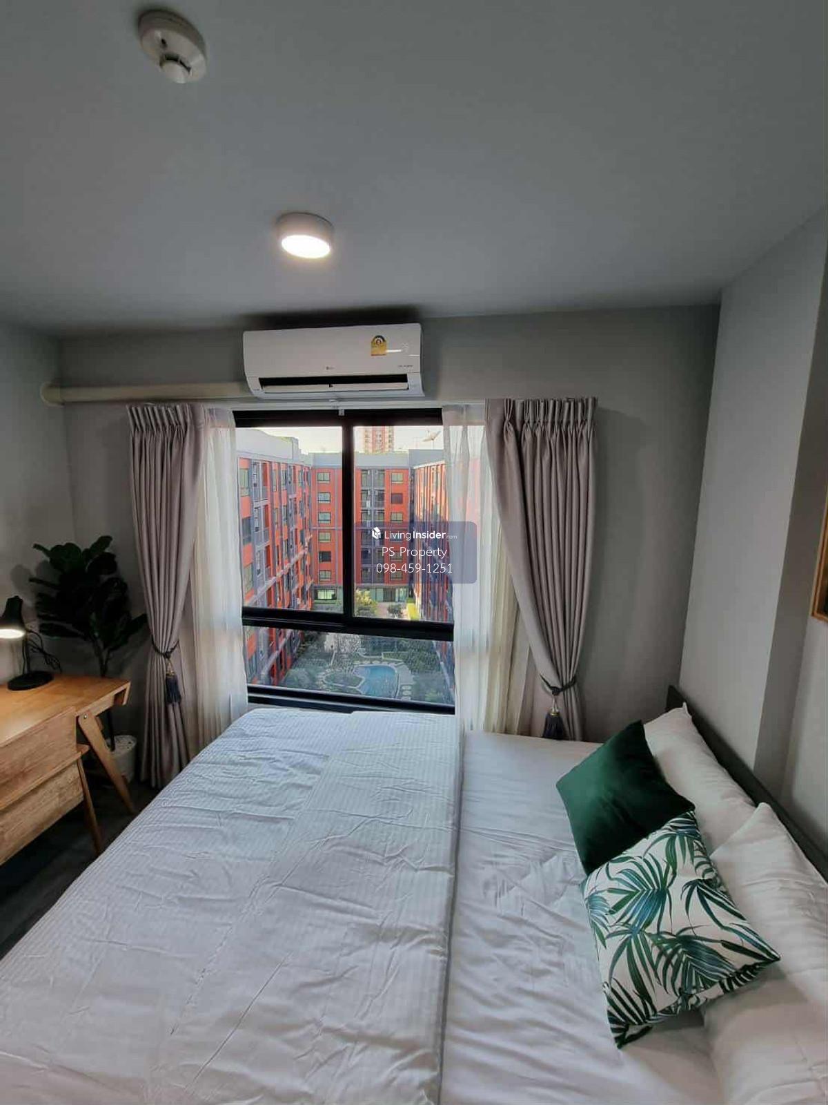 ราคา: 12,000 บาท/เดือน  ขนาด: 29 ตรม.  ชั้น: 8 รูปแบบห้อง: ONE BEDROOM สิ่งอำนวยความสะดวก: ร้านสะดวกซื้อ, กล้องวงจรปิด, คีย์การ์ด, ฟิตเนส, สระว่ายน้ำ, ห้องซักรีด, รปภ. 24 ชม. เฟอร์นิเจอร์: ทีวี, โซฟา,