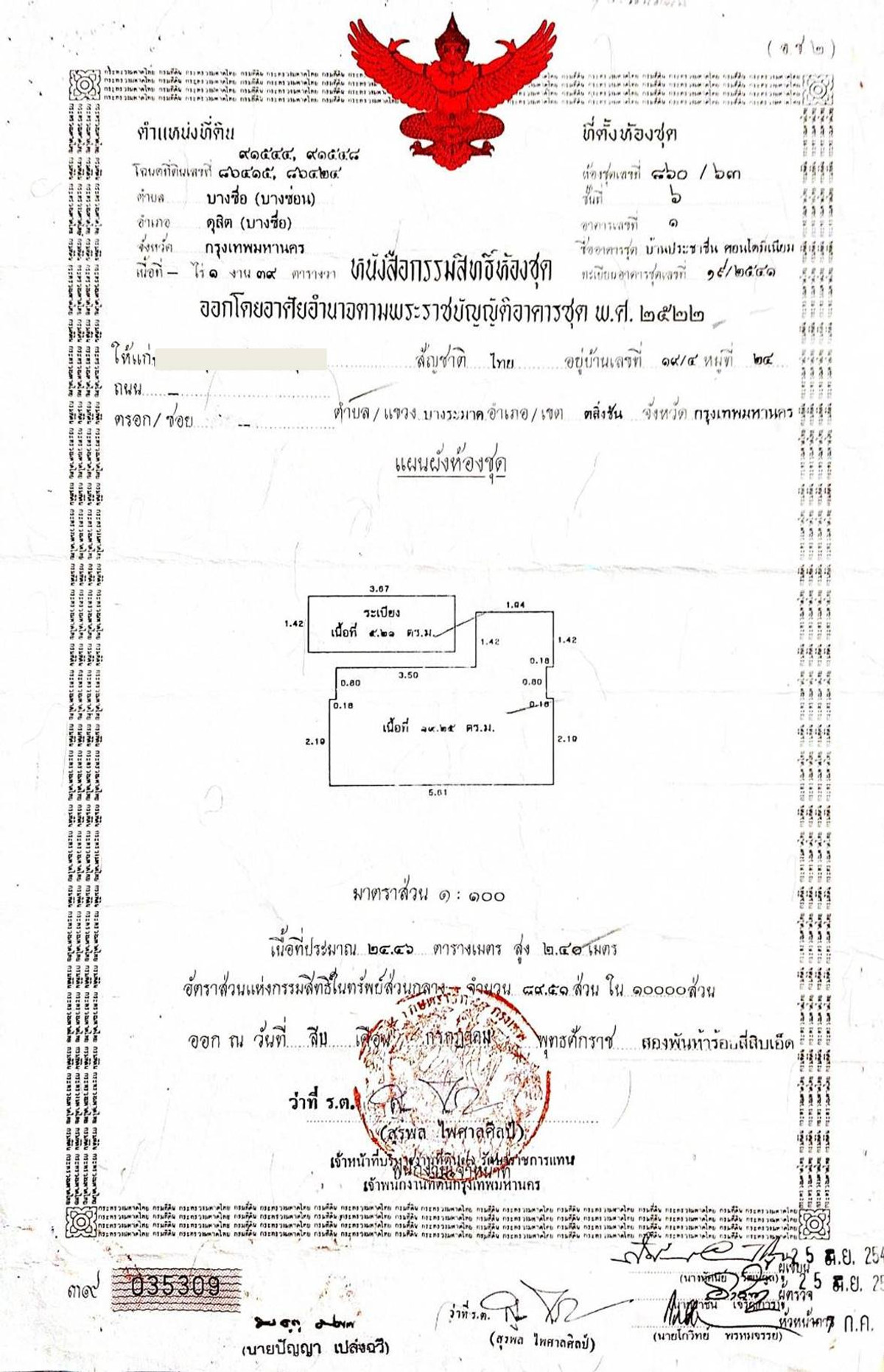 ขายคอนโด บ้านประชาชื่นคอนโดมิเนียม (ใกล้แยกประชานุกูล, MRT) ซอยประชาชื่น 28 (เข้าไปในซอยจากถนนประชาชื่น ประมาณ 120 เมตร) เลียบคลองประปา เขตบางซื่อ,เดินทางสะดวกด้วยรถประจำทาง, ห้องประมาณ 25 ตร.ม. ชั้น 6 (ห้อง 860/63) มีลิฟ, ไม่มีรูปภาพ , เนื่องจากให้คนเช่า (พึ่งออก) และผมอยู่ต่างจังหวัด, ขายราคา 420,000 บาท (สี่แสนสองหมื่นบาท) , สนใจขอดูห้องได้ที่ สนง.แม่บ้านชั้น 1 , โทร คลิกเพื่อดูเบอร์โทรติดต่อ (ยิ่ง)