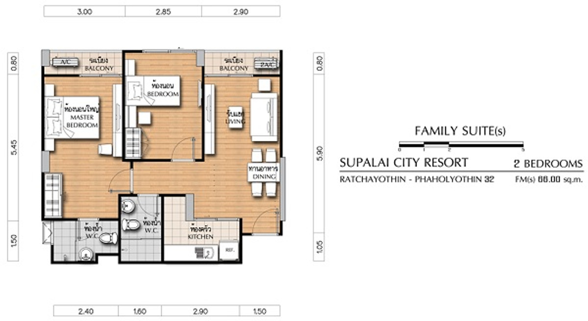 ขาย 2 ห้องนอน ศุภาลัย ซิตี้ รีสอร์ท รัชโยธิน-พหลโยธิน 32 แบบ 65 ตรม ชั้น 4 วิวสระสวยสุด 6180000