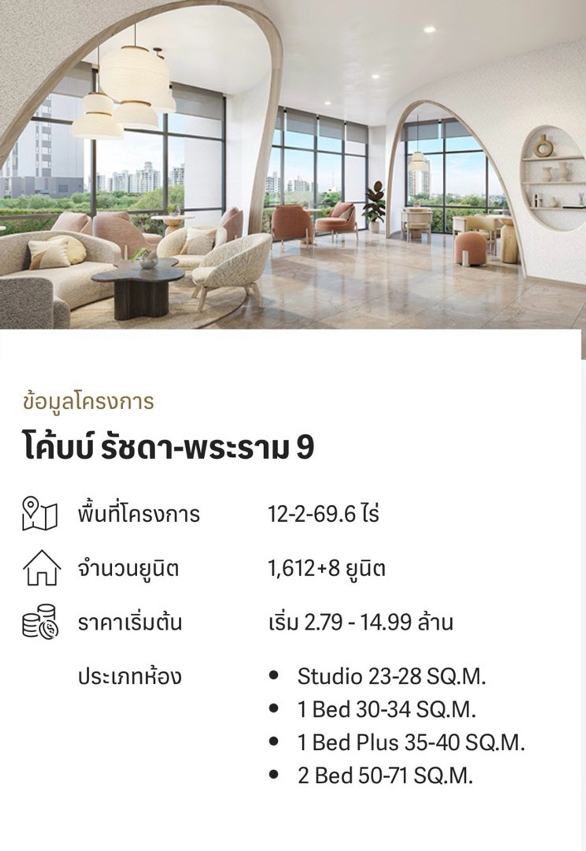 ข้อมูลเกี่ยวกับโครงการ โค้บบ์ รัชดา - พระราม 9 COBE Ratchada - Rama 9...อ่านเพิ่มเติม
