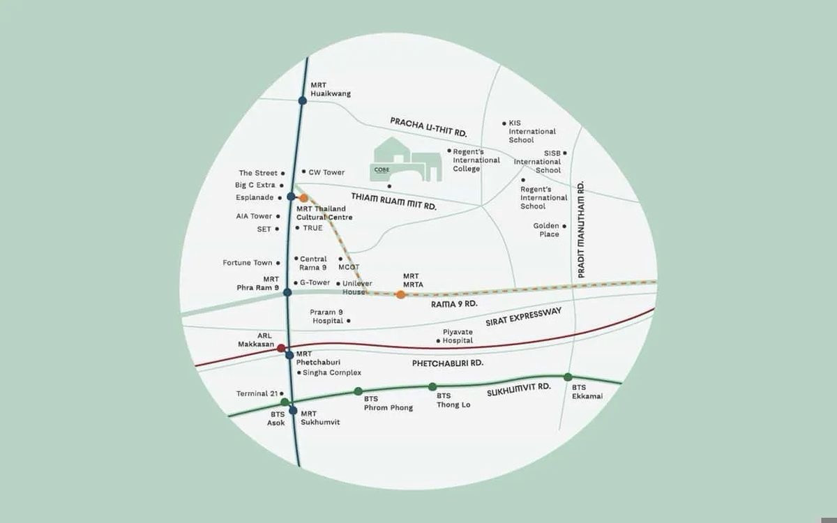 COBE Ratchada-Rama 9 (โค้บบ์ รัชดา-พระราม9)คอนโด High Rise 9 อาคารแบรนด์ใหม่จาก SC Asset ที่มาภายใต้คอนเซปต์ The First Co-Being Community เจาะกลุ่มคนรุ่นใหม่ ตั้งอยู่บนพื้นที่ขนาดใหญ่กว่า 12 ไร่ พร้อม