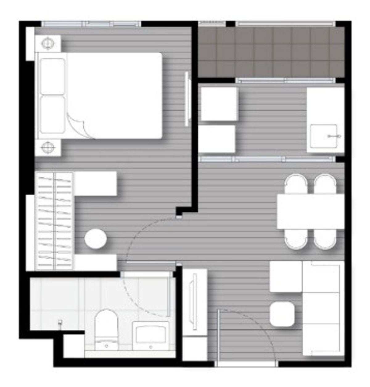 • แบบห้อง: 1 ห้องนอน / 1 ห้องน้ำ