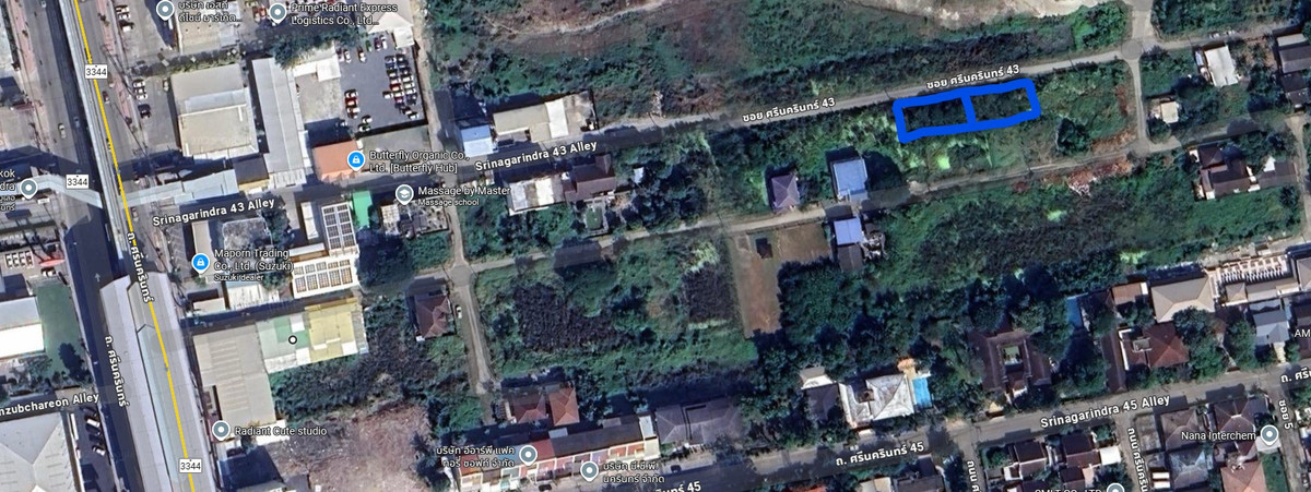 ขายที่ดินทำเลดี 2 แปลง99+98 ตรว ถนนศรีนครินทร์ 43 ใกล้สถานที่รถไฟฟ้าสายสีเหลือง สถานีศรีนครินทร์ 38