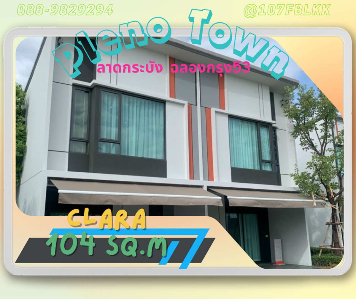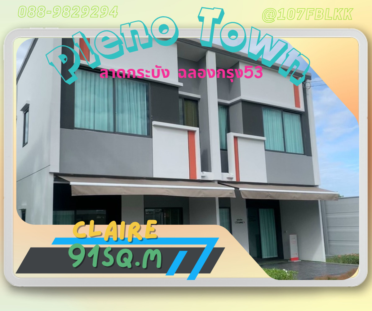 ลงทะเบียนรับโปรโมชั่น ติดต่อสอบถาม ยูนิต หรือสนใจเข้าชมโครงการได้ตลอดเวลา เราเป็นตัวแทน จาก BC ในเครือ AP Pleno town ลาดกระบัง-ฉลองกรุง 53 แบบบ้าน ทาว์นโฮม และบ้านแฝด claire 91 ตร.ม solo 98 ตร.ม clara