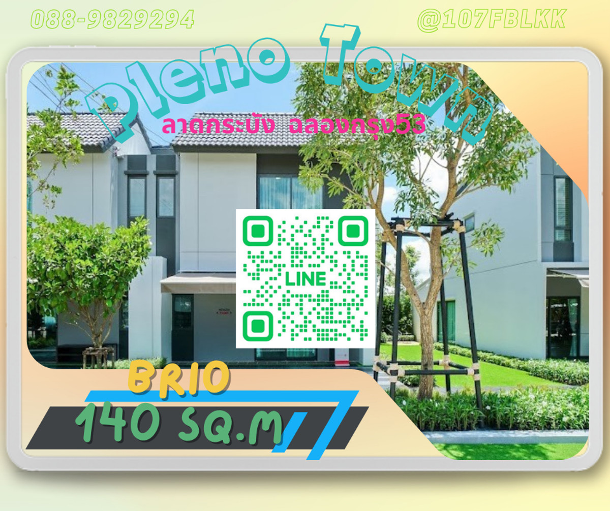 ลงทะเบียนรับโปรโมชั่น ติดต่อสอบถาม ยูนิต หรือสนใจเข้าชมโครงการได้ตลอดเวลา เราเป็นตัวแทน จาก BC ในเครือ AP Pleno town ลาดกระบัง-ฉลองกรุง 53 แบบบ้าน ทาว์นโฮม และบ้านแฝด claire 91 ตร.ม solo 98 ตร.ม clara 104 ตร.ม Brio 140 ตร.ม สนใจสอบถามราคา ข้อมูลเพิ่มเติม หรือนัดชมโครงการได้ตลอดเวลา ****** เงื่อนไขเป็นไปตามที่บริษัทกำหนด******** Line ID :: @107fblkk ( มี @) 📳Tel :: คลิกเพื่อดูเบอร์โทรติดต่อ