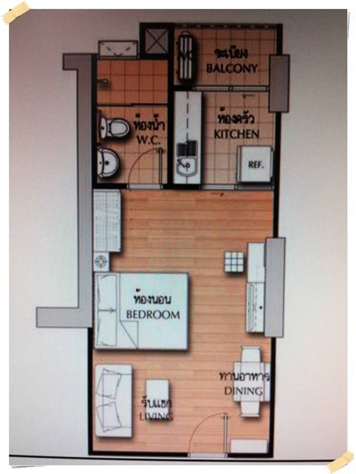 รหัสทรัพย์ 1RC-053-3 Studio 1 ห้องน้ำ ห้องขนาด 32 ตรม อุปกรณ์ภายในห้อง 1. แอร์ 2. ตู้เย็น แบบ 2 บาน แยกช่องน้ำแข็ง 3. เครื่องทำน้ำอุ่น 4. เครื่องไมโครเวฟ 5. โต๊ะและเก้าอี้ทำงาน 6. โต๊ะกลางที่ดึงหน้าโต