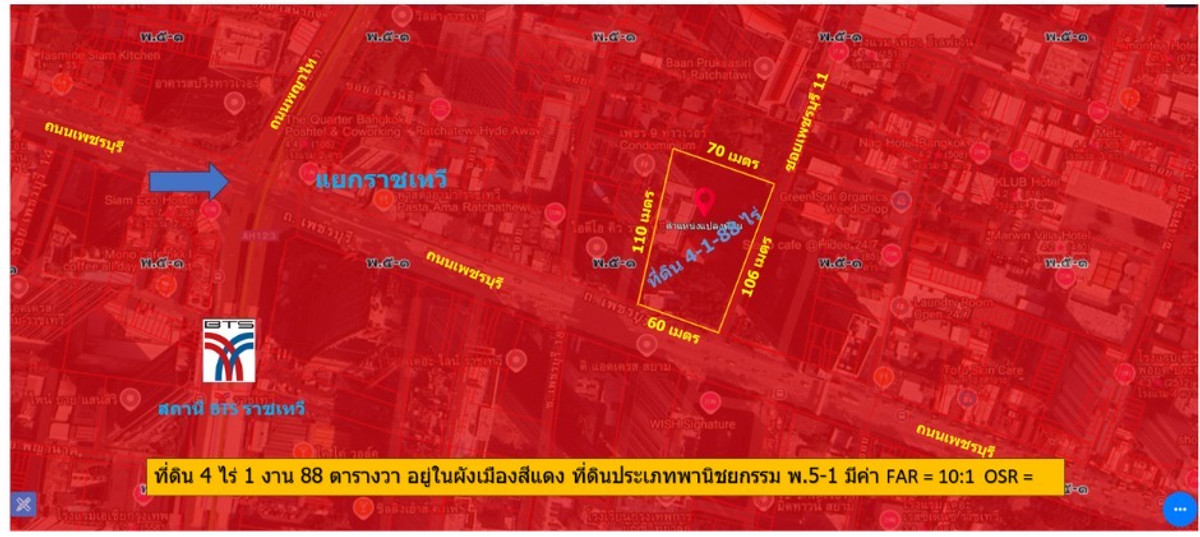 รหัสทรัพย์ : LB128 – 000801 - ขายที่ดิน 4-1-88 ไร่ บนถนนเพชรบุรี ติดซอยเพชรบุรี 11 เขตราชเทวี - ที่ดินเหมาะสำหรับสร้างสถานฑูต - ที่ดินเหมาะสำหรับสร้าง office Building, อพาร์ทเม้นท์ , โรงแรม หรือ คอนโดมิเนียม - ที่ดินหน้ากว้าง ติดถนนเพชรบุรี กว้าง 59 เมตร ด้านข้างติดซอยเพชรบุรีตัดใหม่ซอย 11 กว้าง 106 เมตร - พื้นที่สีแดง พ.5-1 - ใกล้ แยกราชเทวี - เยื้องสถานฑูตอินโดนิเซีย - ตรงข้ามกรมการพลังงานทหาร - ใกล้ ห้าง Phenix ประตูน้ำ (ห้างพันธุ์ทิพย์พลาซ่าเดิม) - ใกล้ ประตูน้ำ - ใกล้ห้าง The Platinum - ใกล้ตึกใบหยก - ใกล้ ห้าง Central World - ใกล้ ห้าง MBK - ใกล้สิ่งอำนวยความสะดวกมากมาย ทั้งร้านค้า ร้านอาหาร ซุปเปอร์มาเก็ต • สนใจนัดชมติดต่อ : คุณพันธุ์ธัช โทร คลิกเพื่อดูเบอร์โทรติดต่อ #ที่ดินธุรกิจ กทม #ที่ดินถนนเพชรบุรี